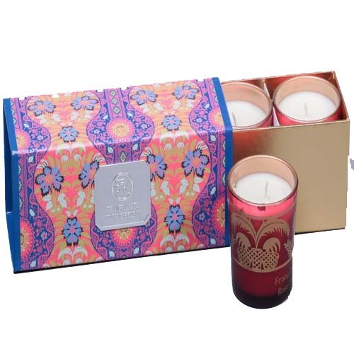 Подарочный набор из 3 свечей аромо Франжипан и лепестки роз