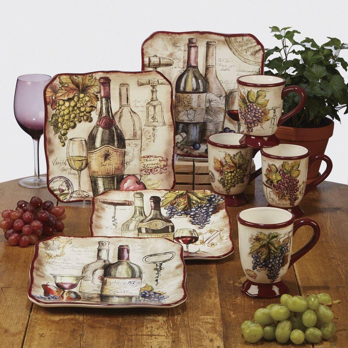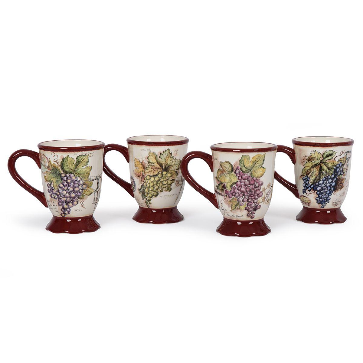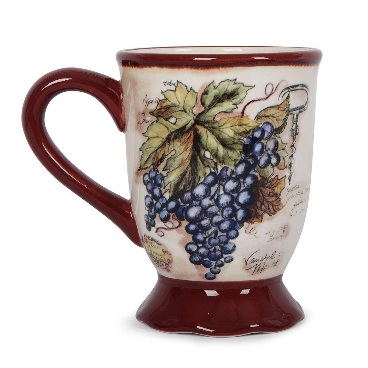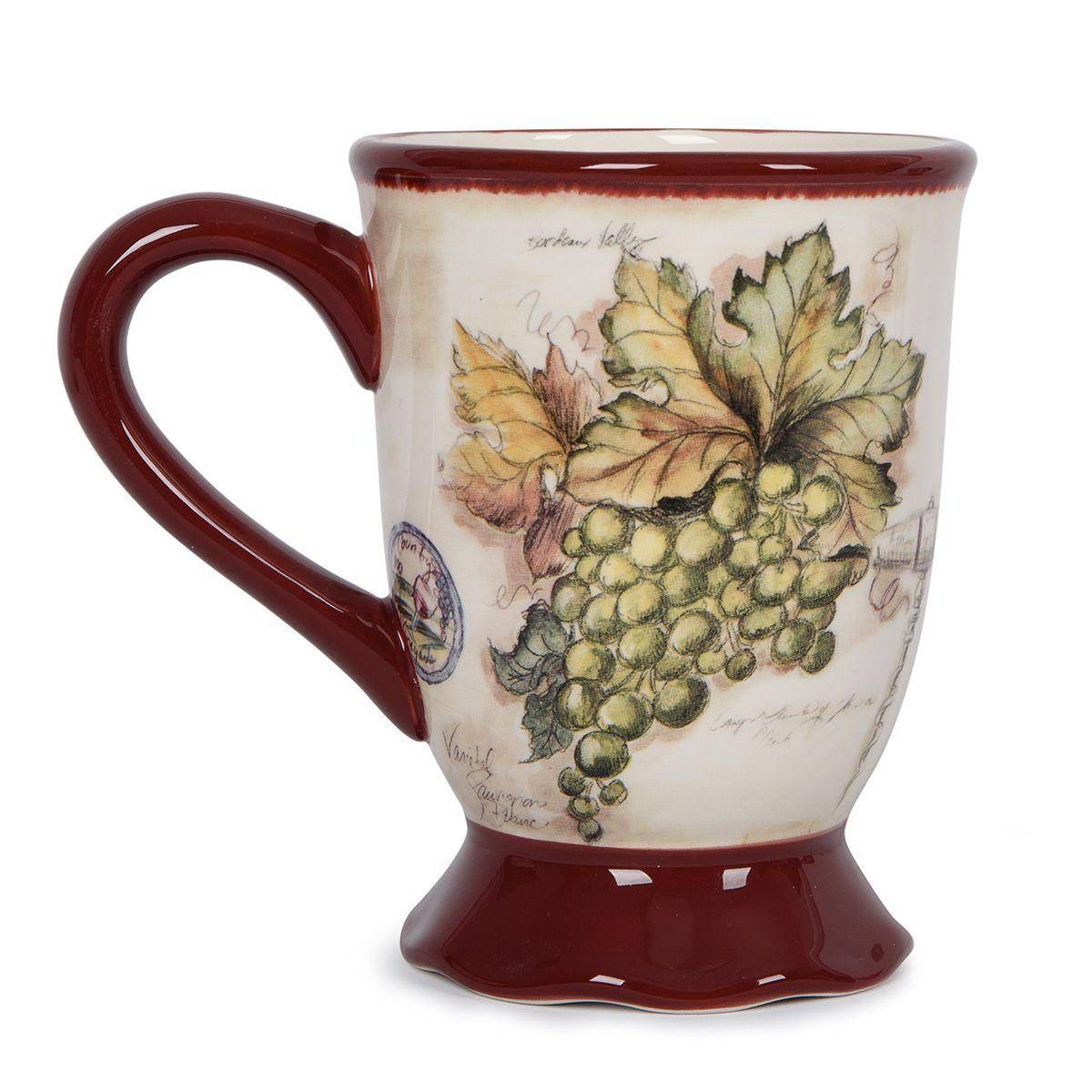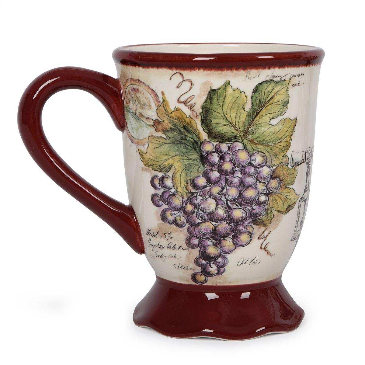 Кружки с оригинальным дизайном в стиле кантри от популярной творческой студии Tre Sorelle Studios добавят нотки изысканности привычному семейному чаепитию. Изделия украшены яркими гроздьями винограда, размещенными на белоснежном фоне с узором в виде записей из винодельческого журнала и фрагментами пейзажей с виноградниками.