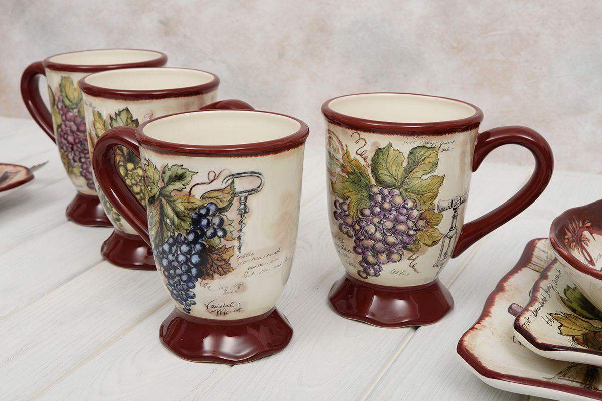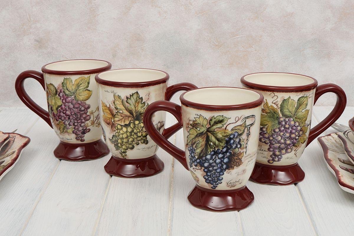 Набор из 4-х чайных кружек из керамики Виноделы 530 мл