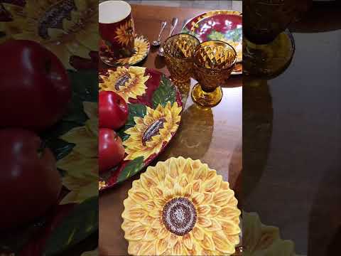 Роскошные изделия из коллекции «Подсолнухи на закате» идеально подходят для создания праздничной сервировки.