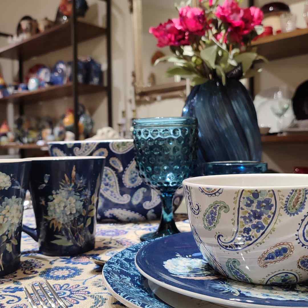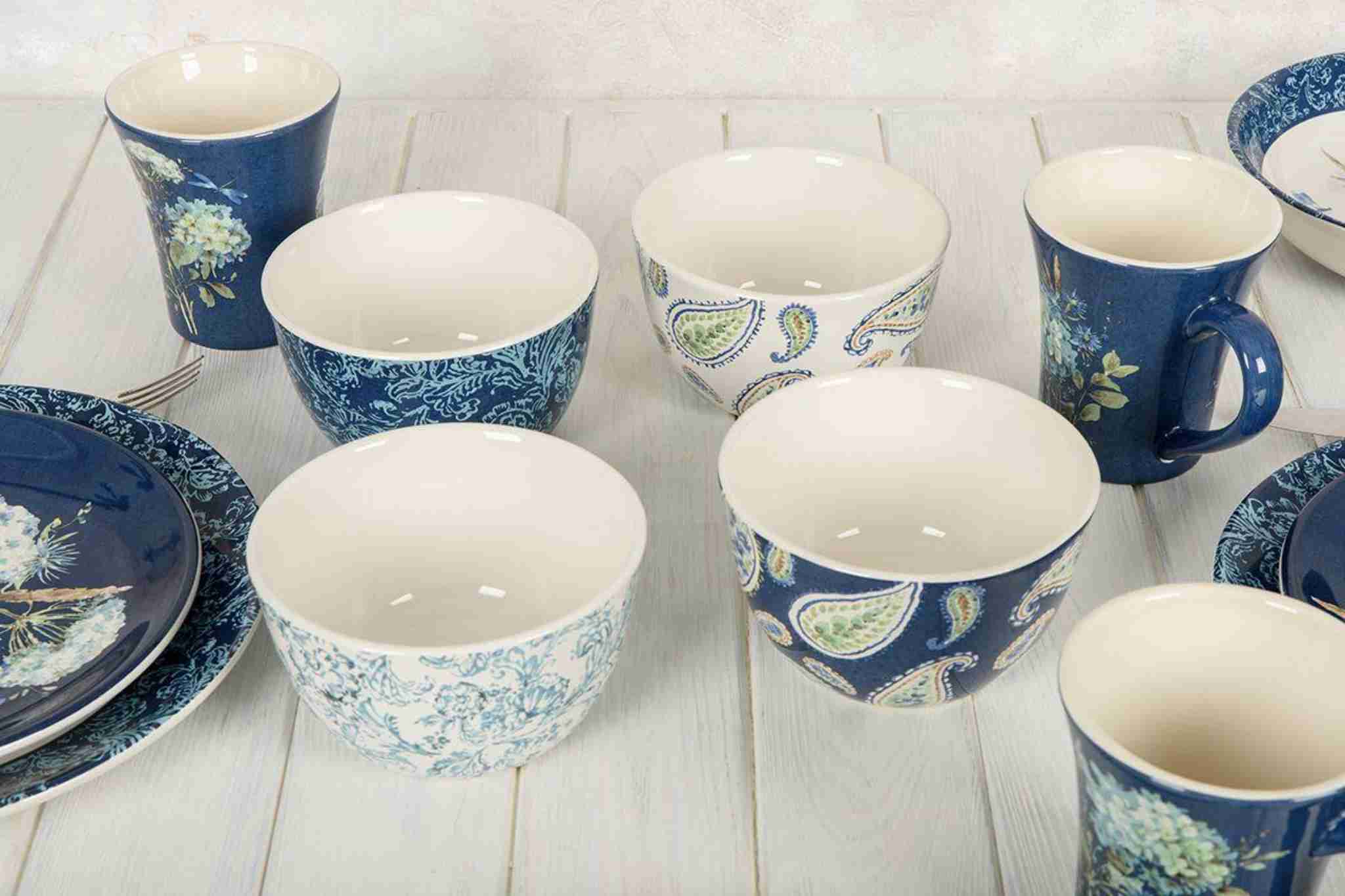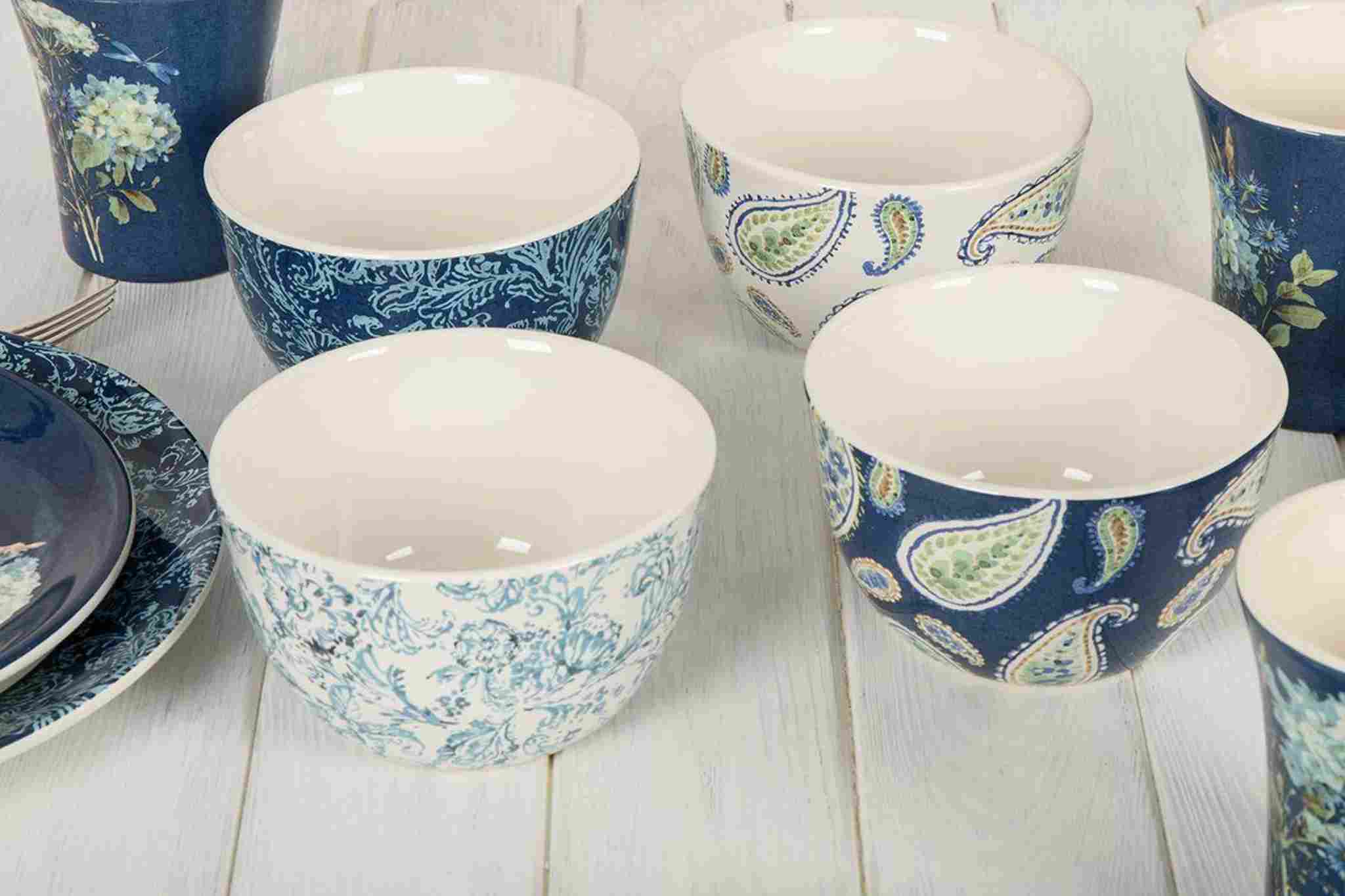 Набір складається з чотирьох піал із різними флористичними візерунками. Дві піали прикрашені квітковим орнаментом у стилі гравюри, а ще дві — східним мигдалеподібним візерунком бута із незабудками всередині, який ще називають «турецький огірок». Універсальні піали підходять для подачі порційних салатів, десертів, морозива або варення.