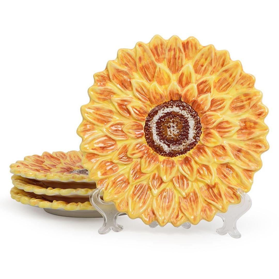 Набор из 4-х рельефных десертных керамических тарелок Подсолнухи На Закате