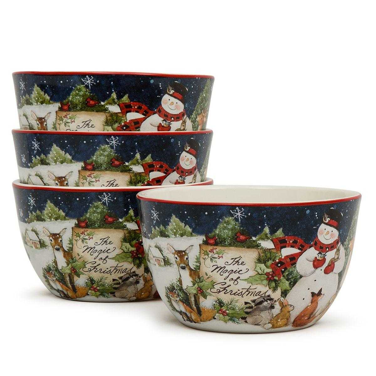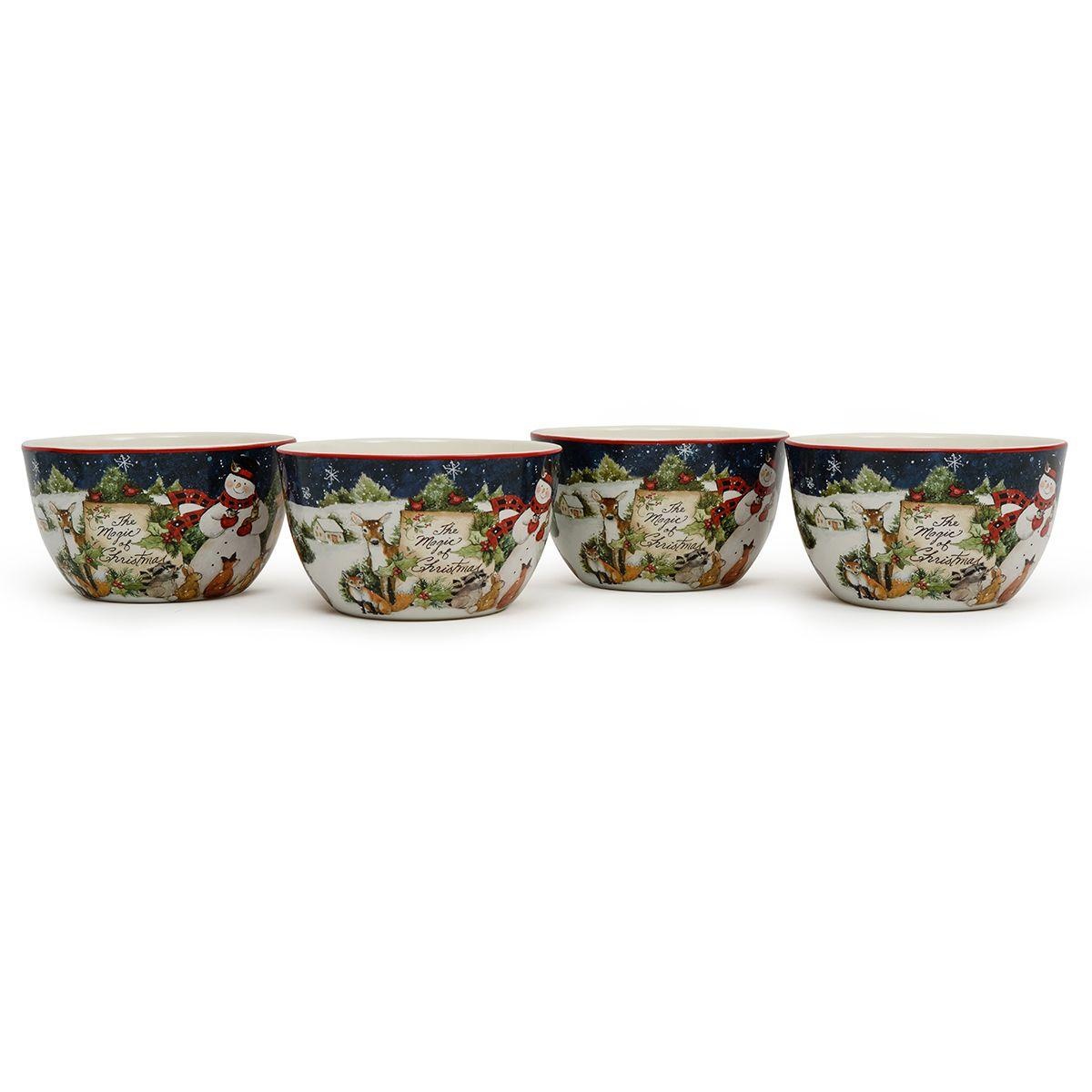 Набор из 4-х синих пиал Рождество со снеговиком