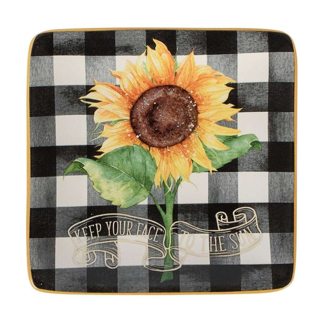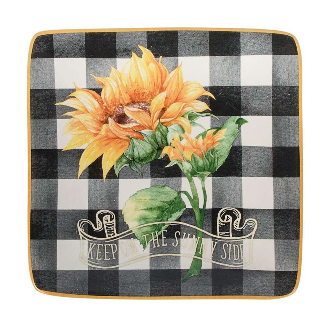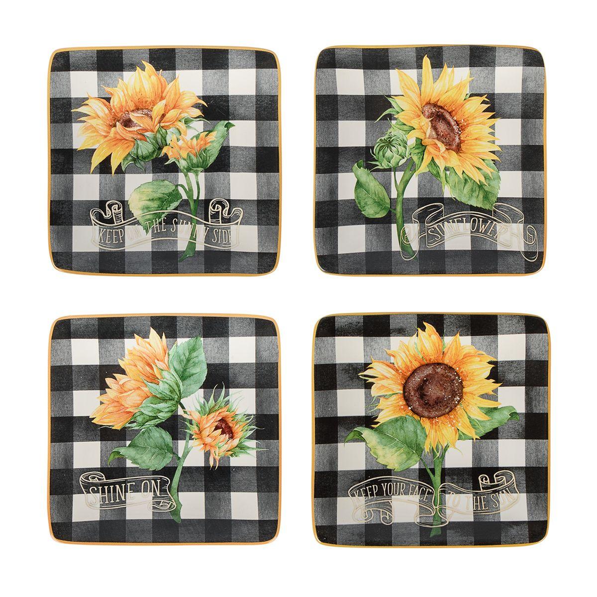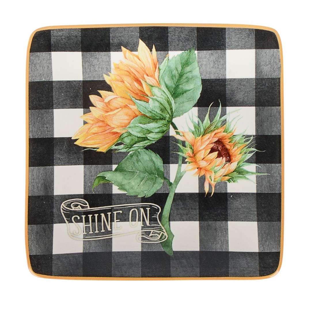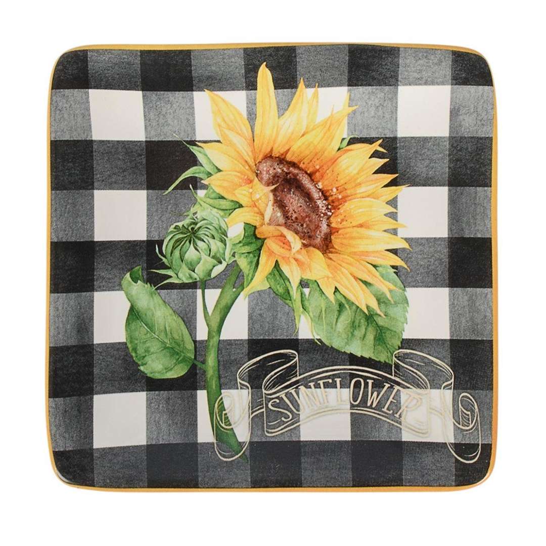 Набор из 4-х тарелок для закусок квадратной формы в клетку Букет Подсолнухов
