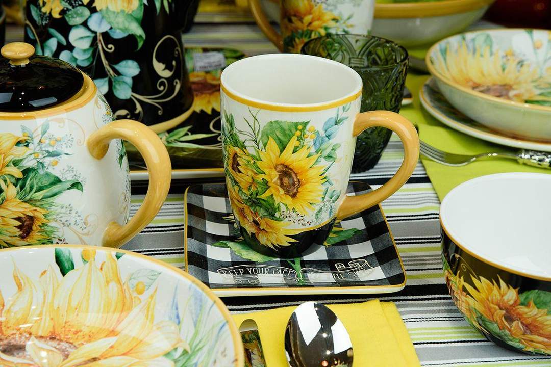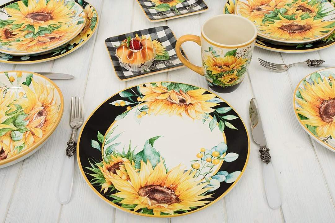 Оригинальные квадратные тарелки из коллекции «Букет подсолнухов» украсят своим видом любое застолье. На черной-белой клетке в стиле виши изображены в акварельной технике пышные цветки подсолнухов. Они смотрятся очень красиво и выгодно контрастируют с общим фоном. Яркий дизайн посуды принадлежит фантазии американской известной художницы Нэнси Минк.Керамика, применяемая для изделий, экологичная и прочная. На поверхность нанесен слой стойкой глазури, который защищает от потертостей и сколов и придает неповторимый блеск. На кружевной скатерти «Гармония» от от Villa Grazia посуда будет смотреться особенно изысканно.