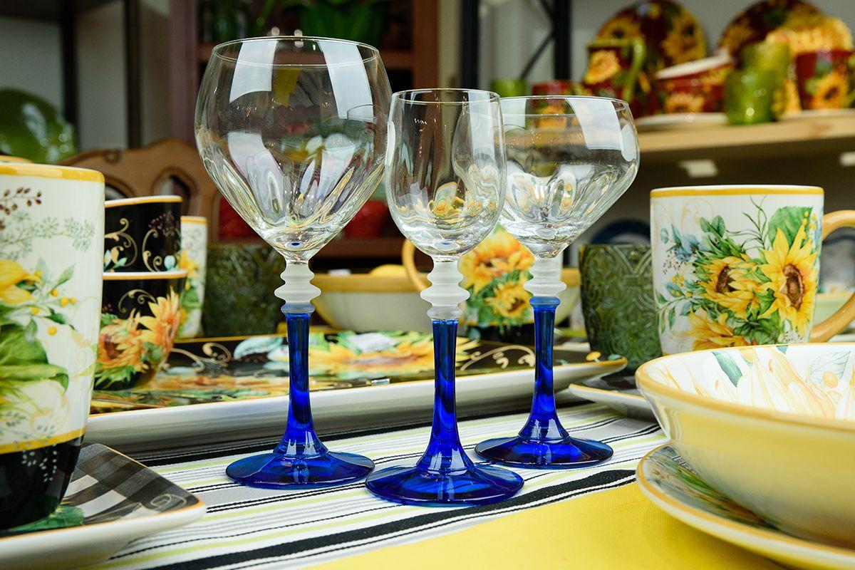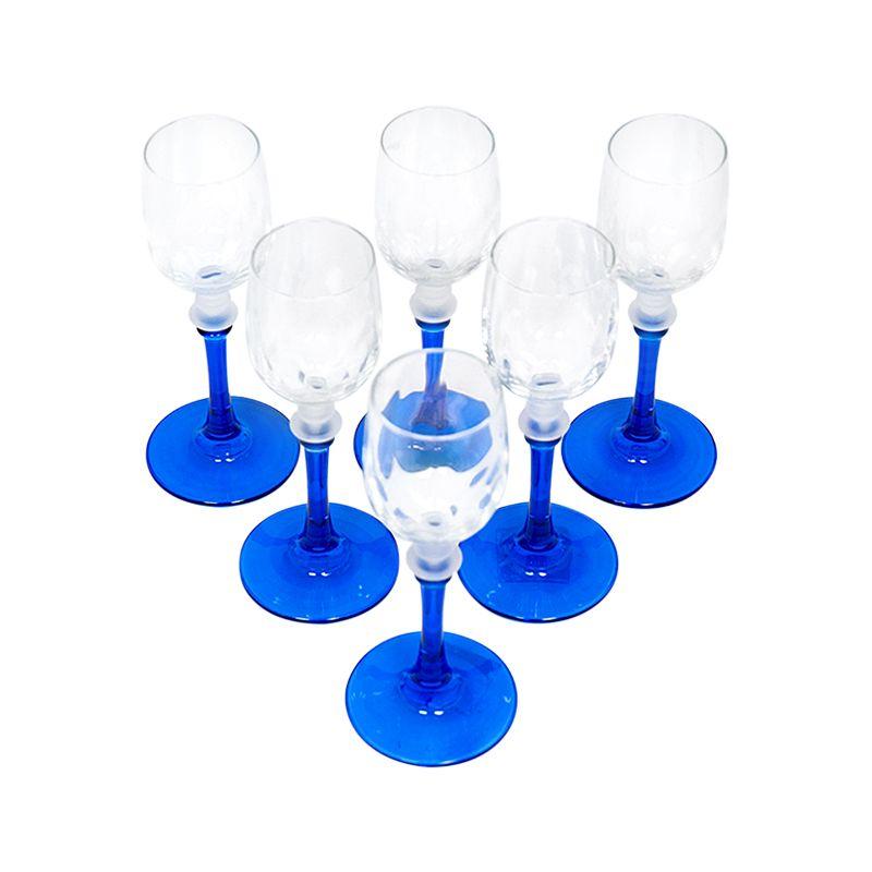 Набор стеклянних рюмок на синих ножках Elegance 6 шт/ 90 мл