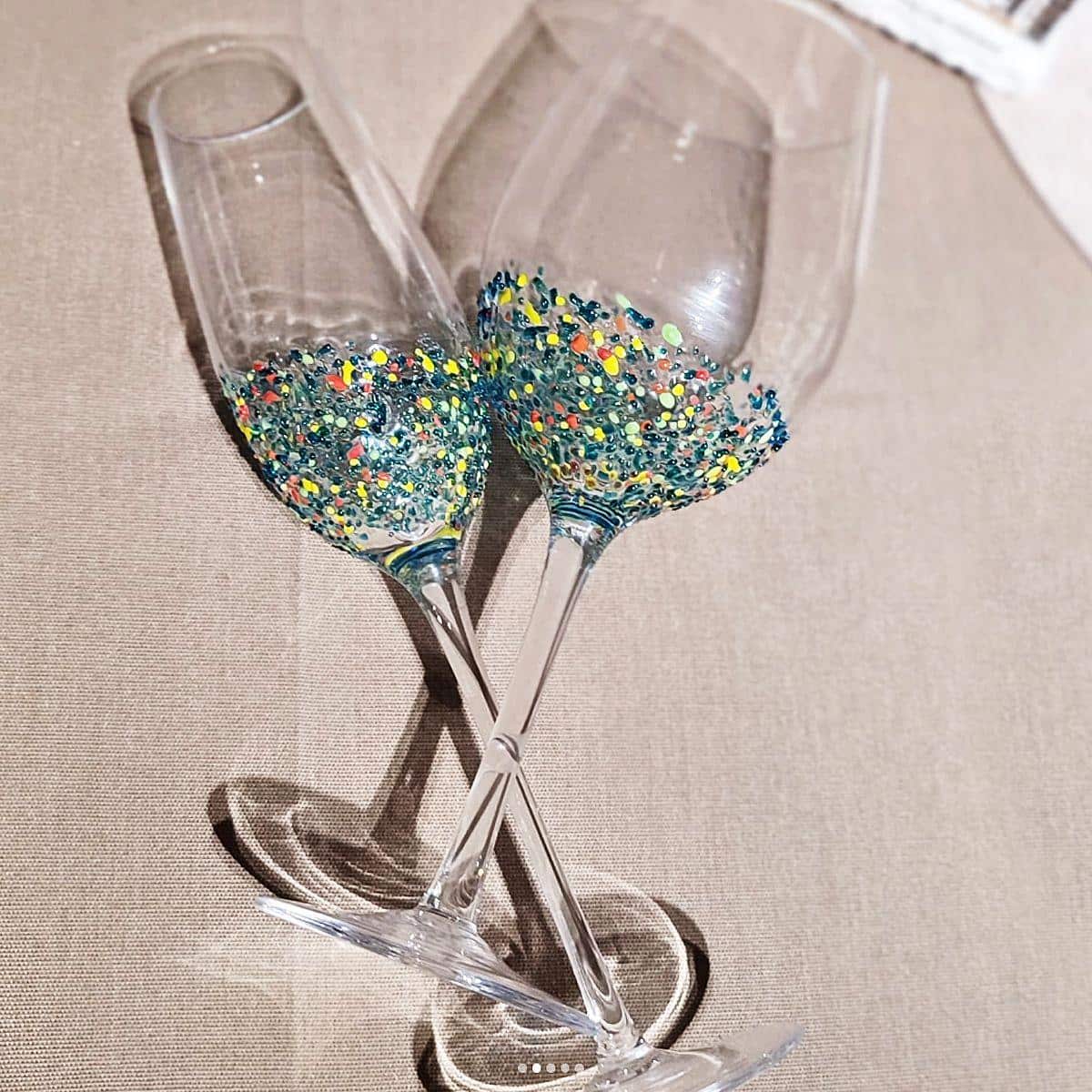 - Авторская роспись – нижняя часть бокала украшена яркими цветными акцентами, которые напоминают россыпь драгоценных камней.