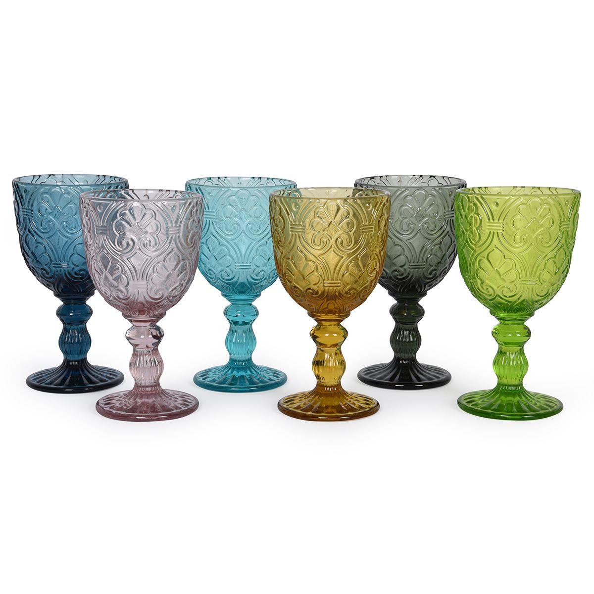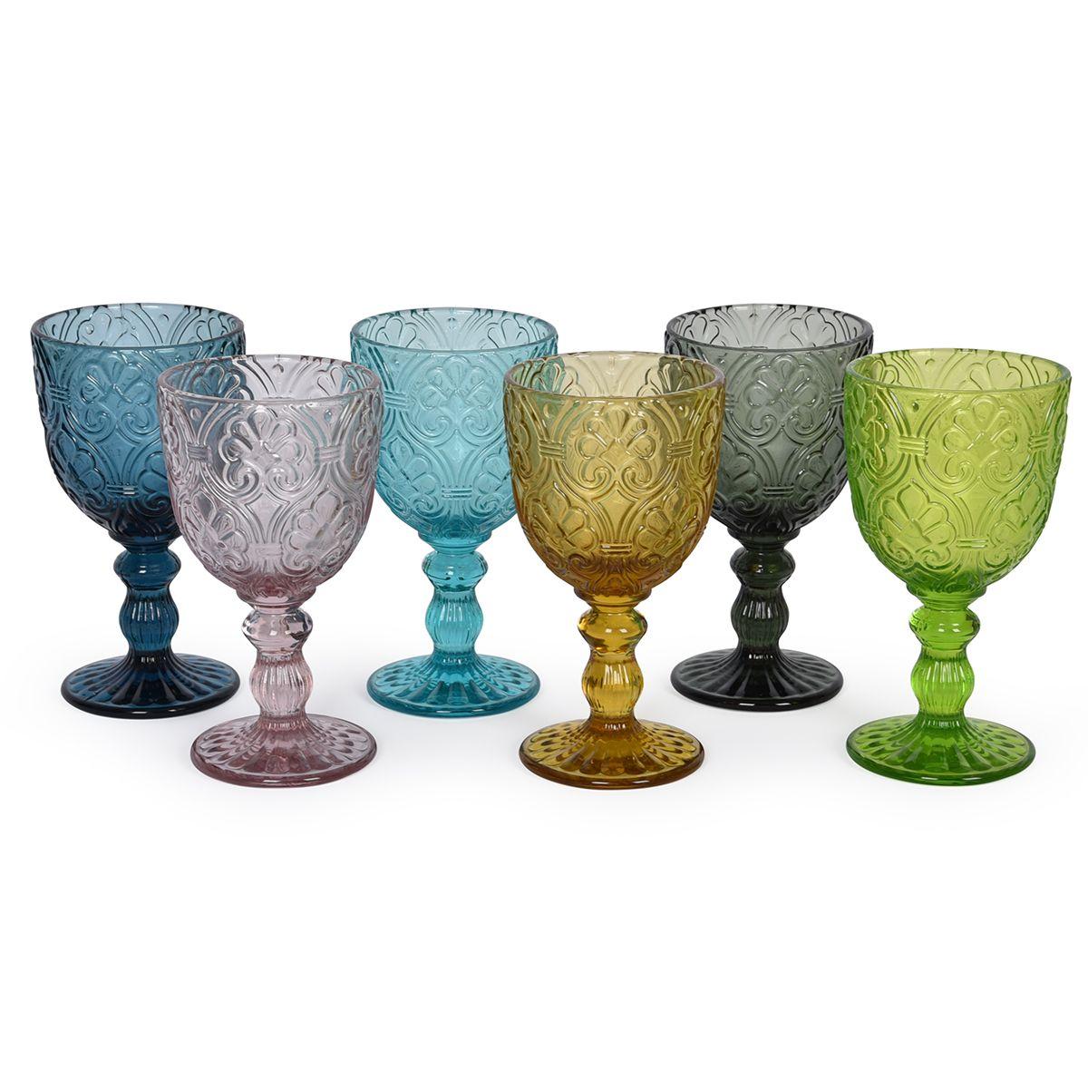 Винные бокалы разноцветные стеклянные 300 мл Коринто на 6 человек