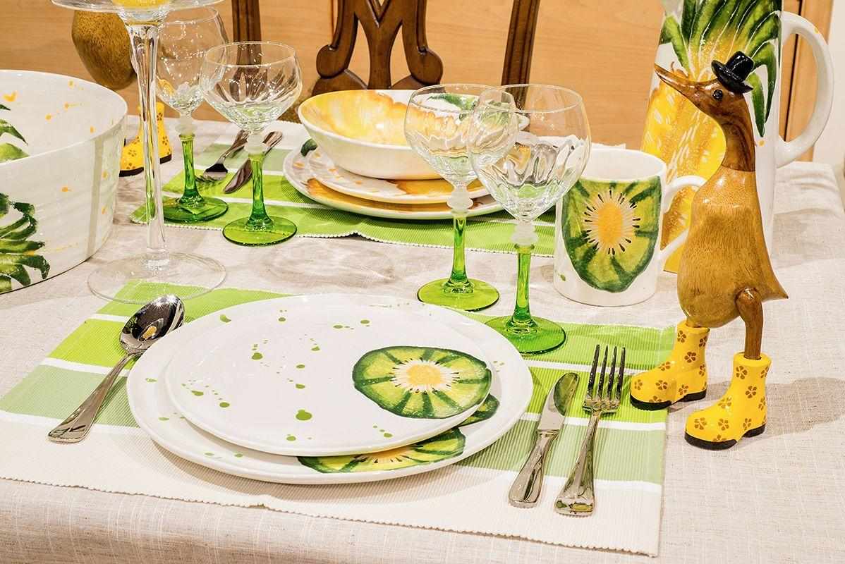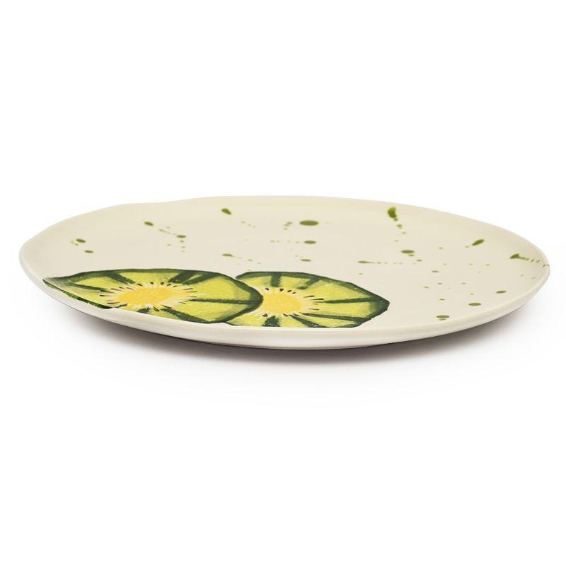 Обеденная тарелка «Фруктовый коктейль» с киви от Villa Grazia — это воплощение летней свежести и естественной гармонии. Сочные оттенки зелёного и жёлтого в рисунке киви выполнены в художественной технике акварели, создавая ощущение живого фрукта на белоснежном фоне. Лёгкие брызги добавляют динамику и создают настроение беззаботного уюта.