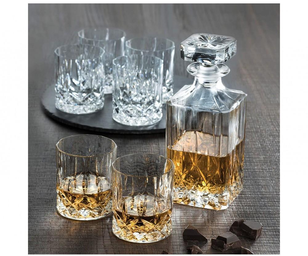 Колекція Opera вирізняється вишуканим гранованим візерунком, що красиво грає відблисками та підкреслює глибину напоїв. Кожен елемент набору виготовлений із високоякісного екологічно чистого скла Luxion, створеного в Італії.