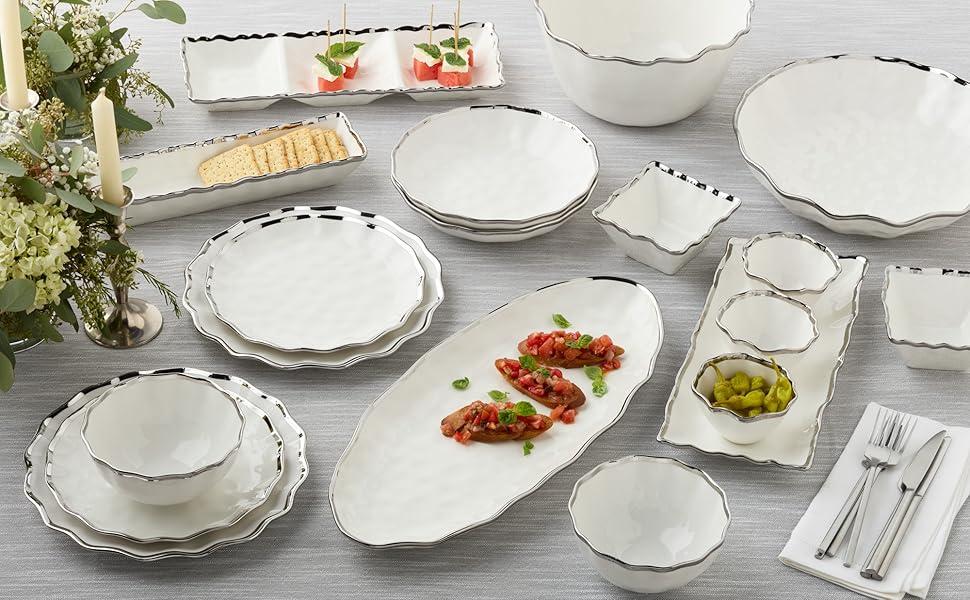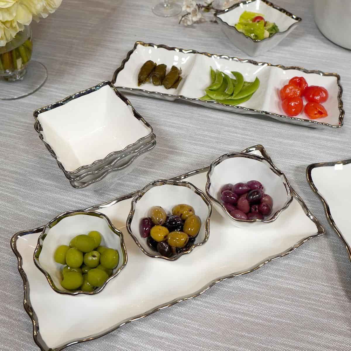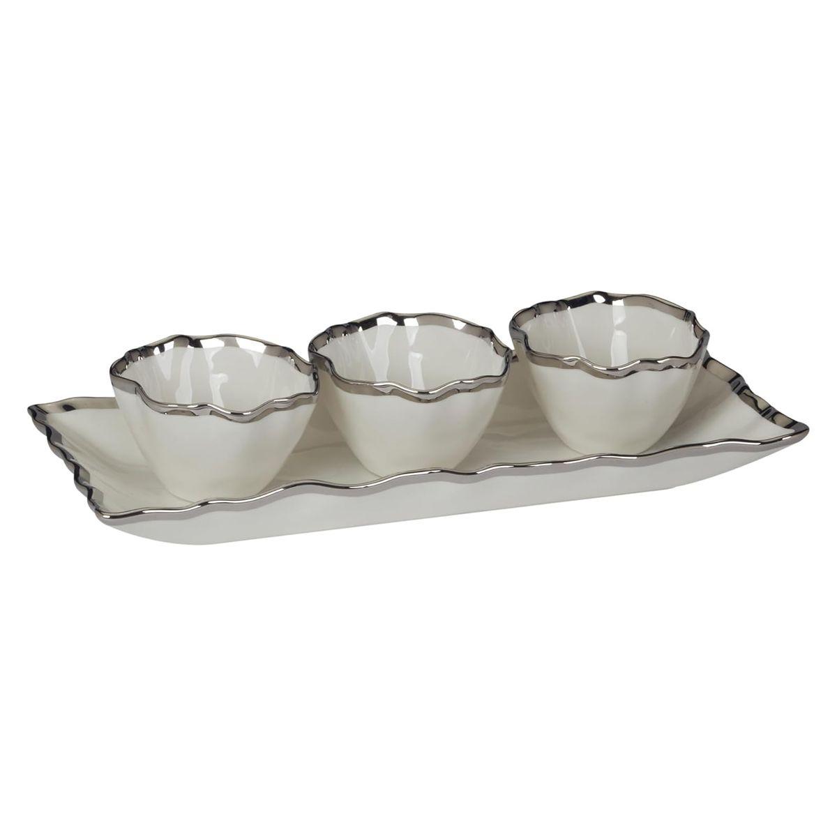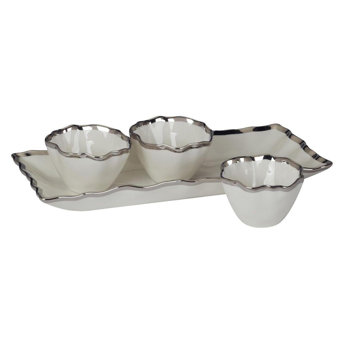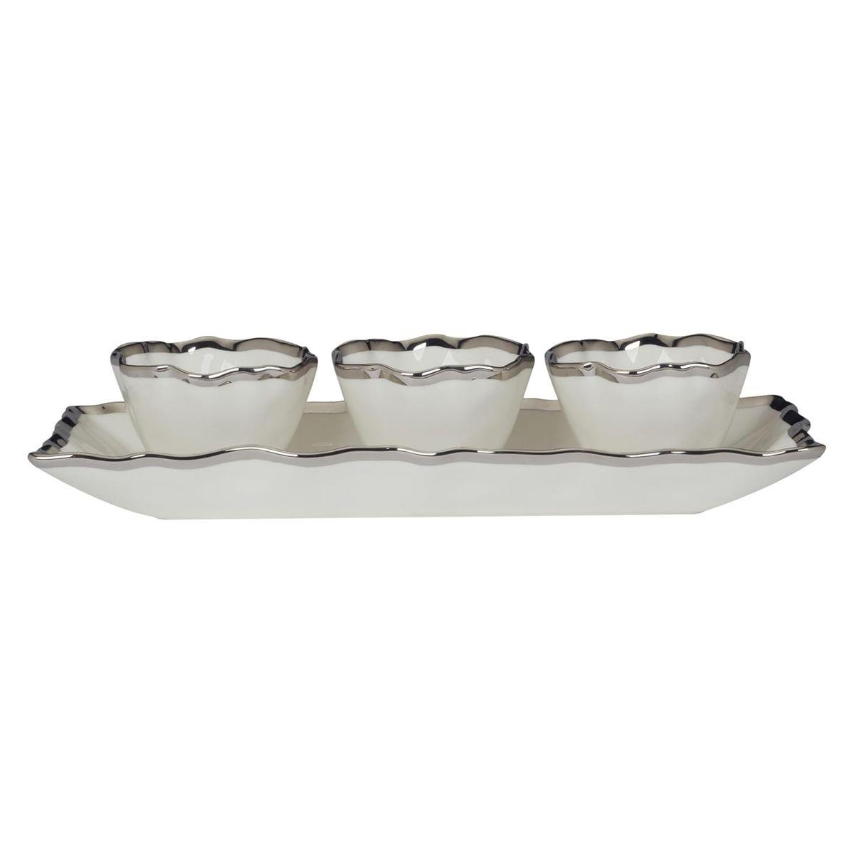 Набор из блюда и 3-х пиал керамический с серебряным кантом Regency Silver