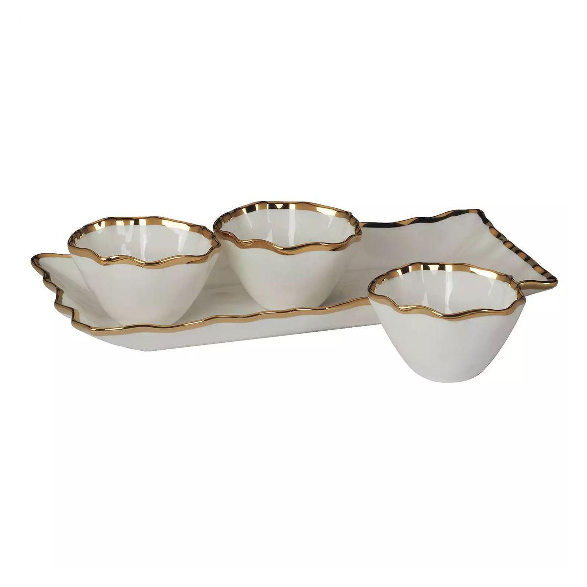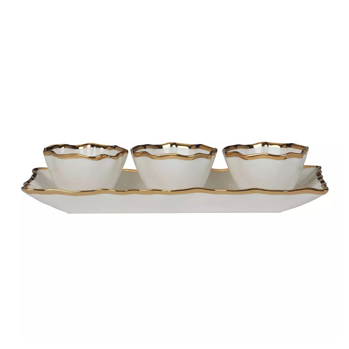Набор из блюда и 3-х пиал керамический с золотым кантом Regency Gold
