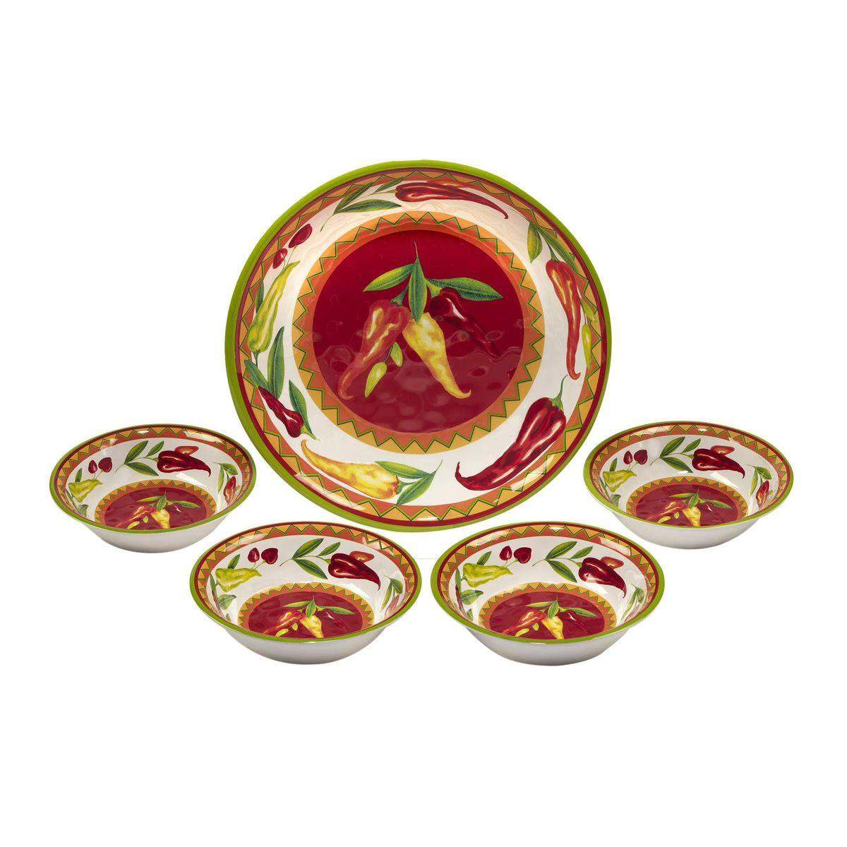 Набор из глубокого блюда и 4 пиал Горячий Чили