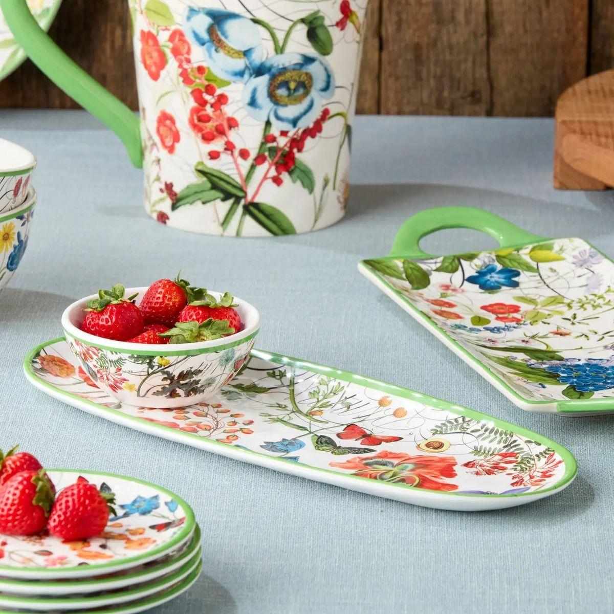Этот набор из меламинового блюда и пиалы делает подачу закусок, ягод и соусов яркой, аккуратной и по-летнему живой. Эффектный цветочный принт instantly выделяет сервировку и добавляет праздничного настроения даже в обычный день. Ударопрочный меламин не содержит бисфенола и полностью безопасен для здоровья, что подтверждено сертификатами. В посудомоечной машине можно мыть при температуре не выше +70°; запрещено использовать в духовке или микроволновой печи; не рекомендуется чистить абразивными средствами. Лёгкий и практичный материал делает набор идеальным как для дома, так и для пикников. Выбирая этот комплект, вы приносите в свой дом красоту, удобство и яркую эмоцию сервировки.