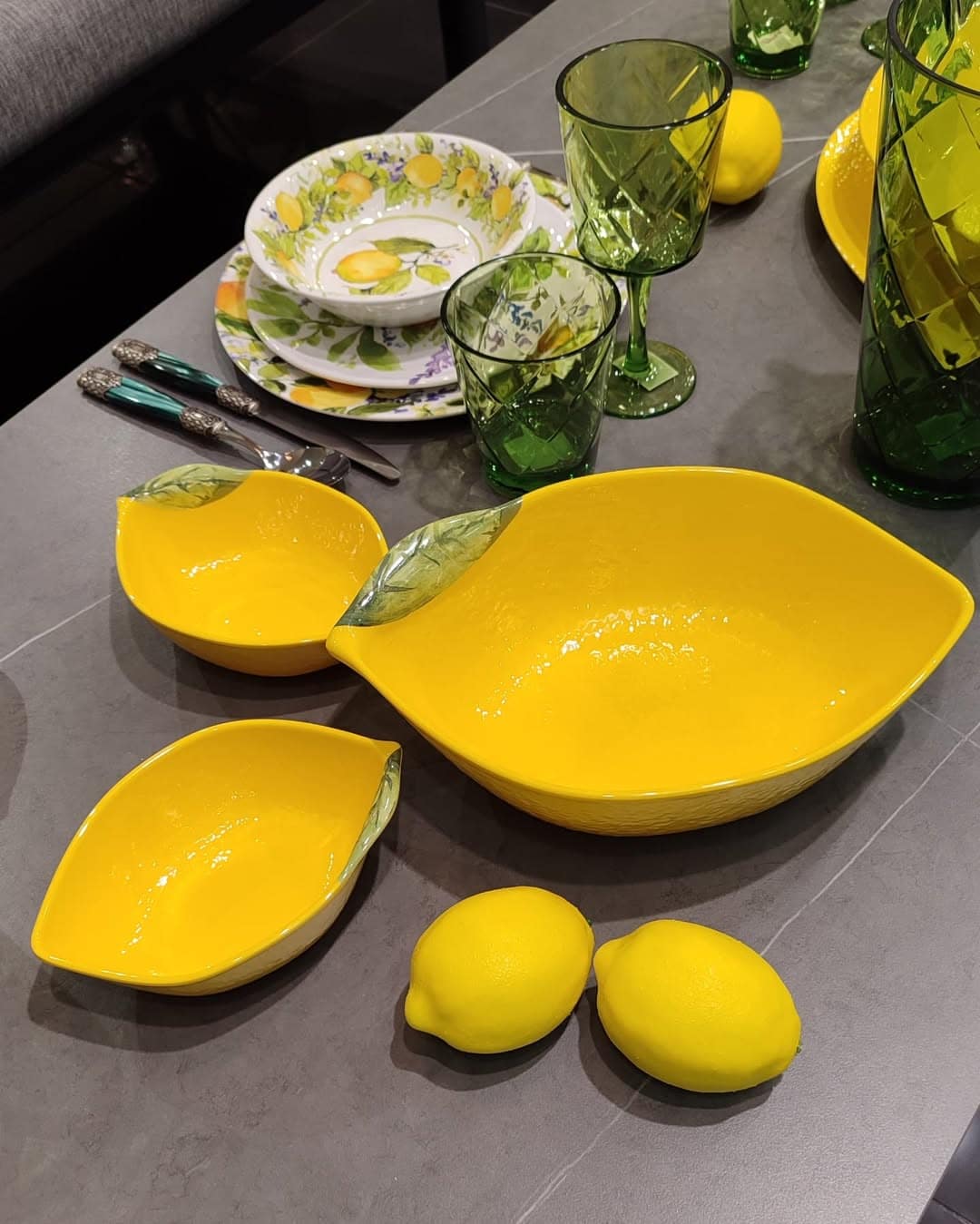 Набор, состоящий из большого салатника и пиал в форме лимона, станет отличным подарком для тех, кто любит пикники и красивую сервировку на свежем воздухе. Изделия выглядят точно как керамика, но при этом не боятся падений и легко выдерживают любые активные моменты.
