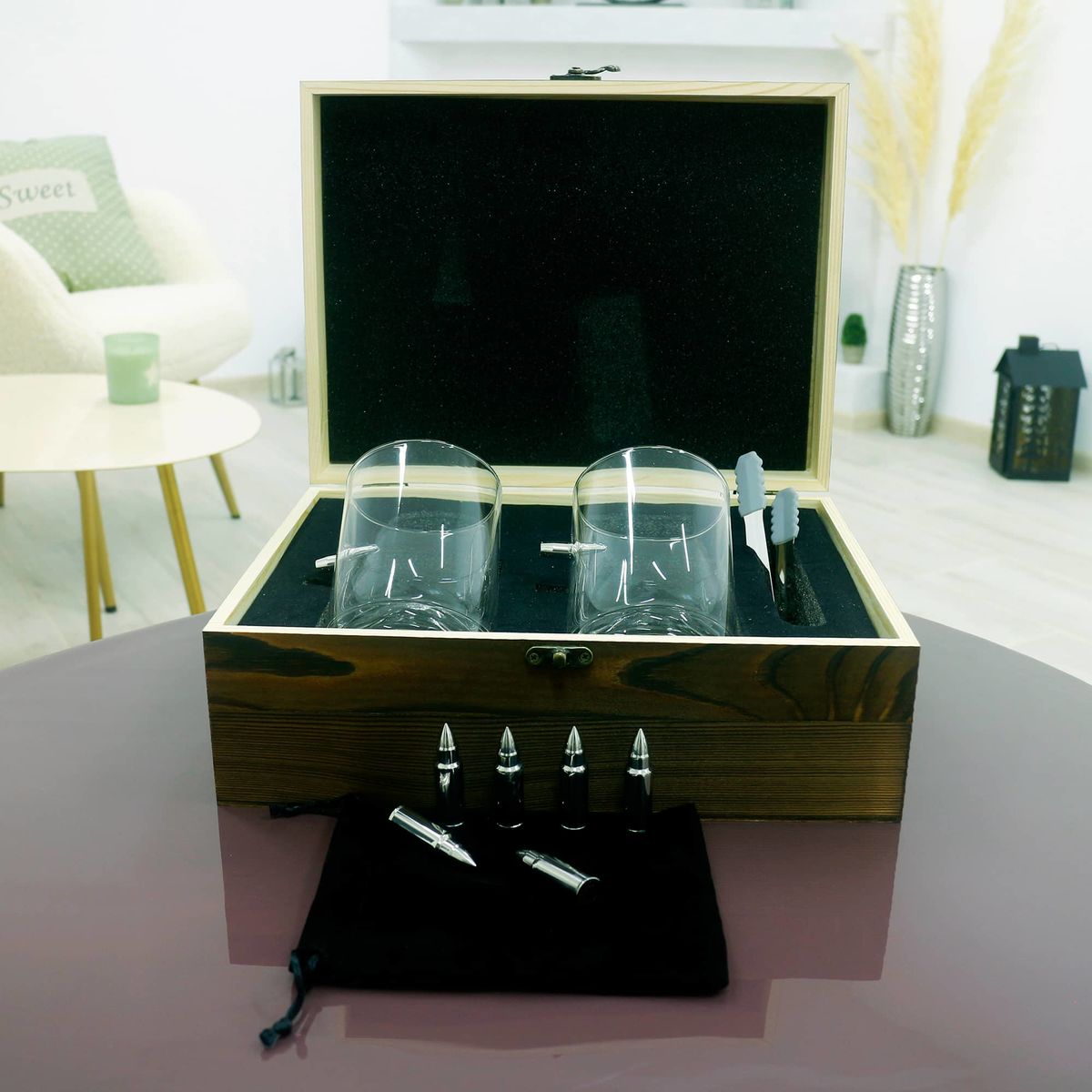 - Пинцет-зажим с силиконовыми наконечниками для удобного и безопасного использования охлаждающих патронов. Подарочная коробка из натурального дерева коричневого цвета, которая добавляет набору элегантности и делает его идеальным подарком.