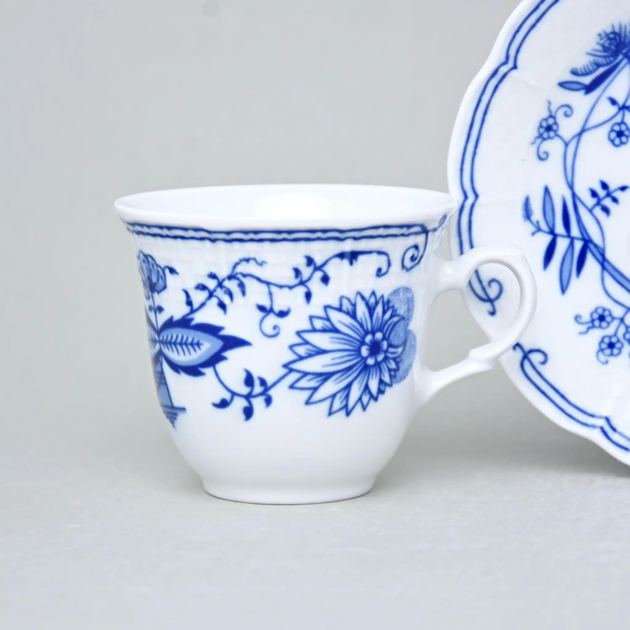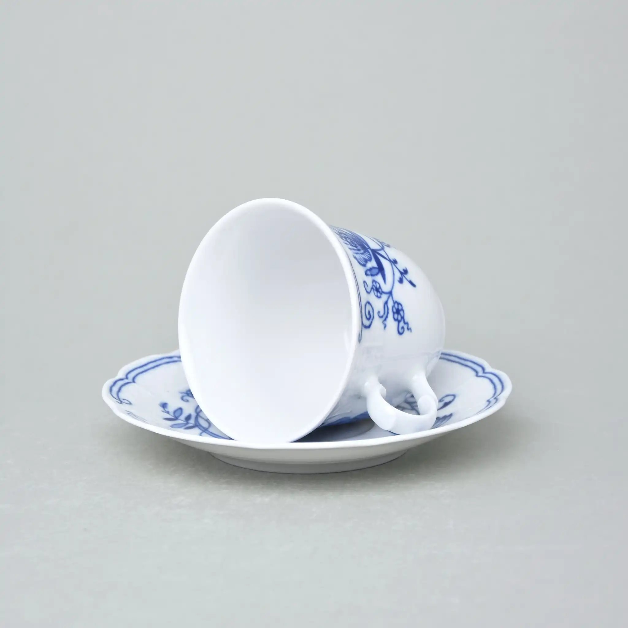 Этот фарфоровый набор — как коллекция состояний, вкусов и настроений. В нём три вида чашек, каждая из которых продумана до мелочей. Белоснежный фарфор, украшенный традиционным синим орнаментом «Цибуляки», словно несёт в себе историю европейской семьи, где каждое чаепитие — это маленький праздник.
