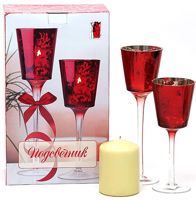 Набор красных стеклянных подсвечников Рэд 2 шт