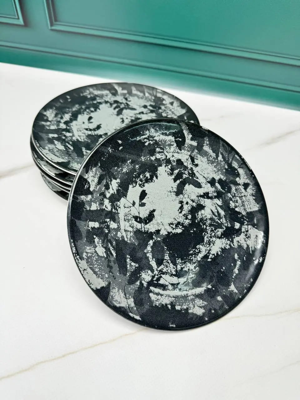 Набор круглых закусочных керамических тарелок Graphite — это современное и выразительное решение для стильной сервировки. Диаметр каждой тарелки составляет 19 см, что делает их идеальными для подачи закусок, десертов, сыров, фруктов или небольших порций основных блюд. Глубокий чёрно-серый оттенок с мраморным рисунком придаёт посуде благородный и оригинальный вид, добавляя сервировке особый характер.