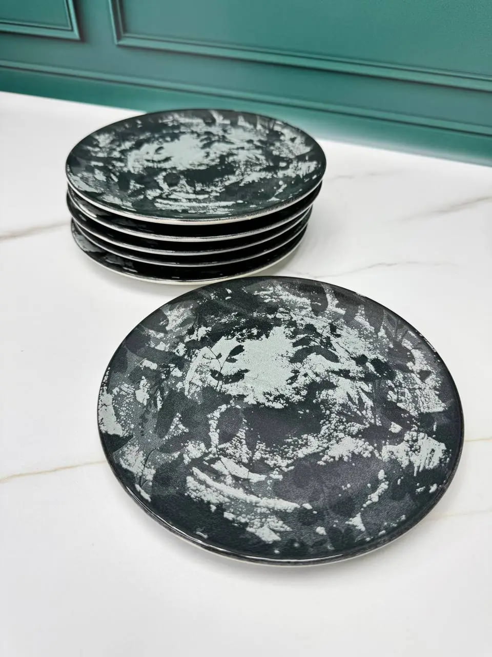 Каждая тарелка выполнена из прочной керамики высокого качества и покрыта стойкой глазурью, которая защищает поверхность от царапин и сохраняет насыщенность цвета даже при регулярном использовании. Оригинальный мраморный узор не только эстетичен, но и практичен — на таком фоне еда выглядит особенно аппетитно и эффектно.