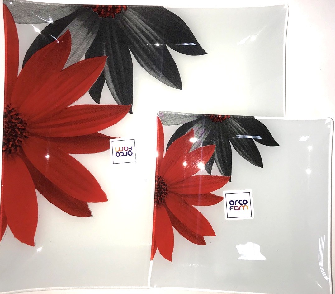 Набір квадратних тарілок на 6 персон + блюдо Квіти