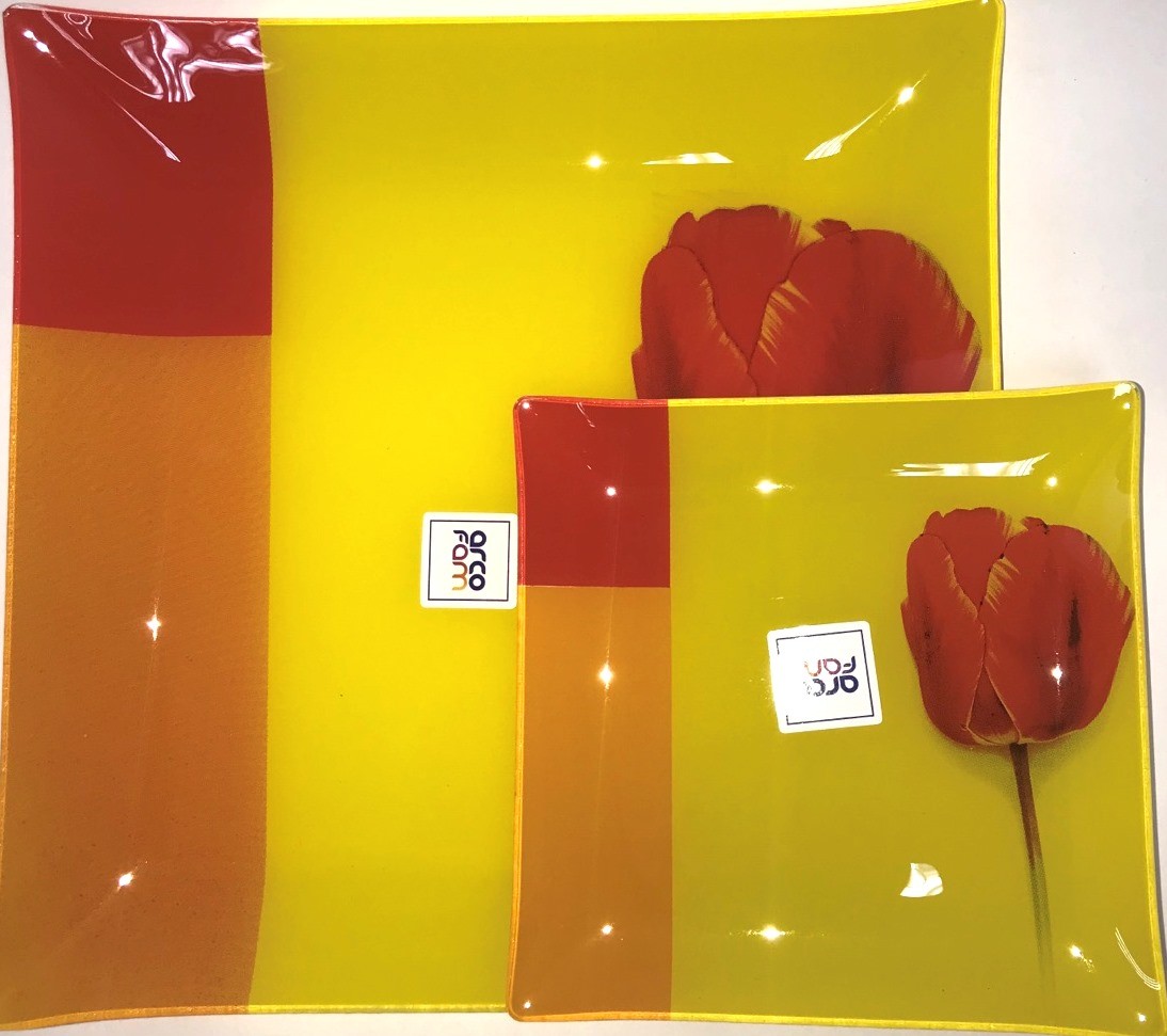Набор квадратных тарелок на 6 персон + блюдо "Цветы"