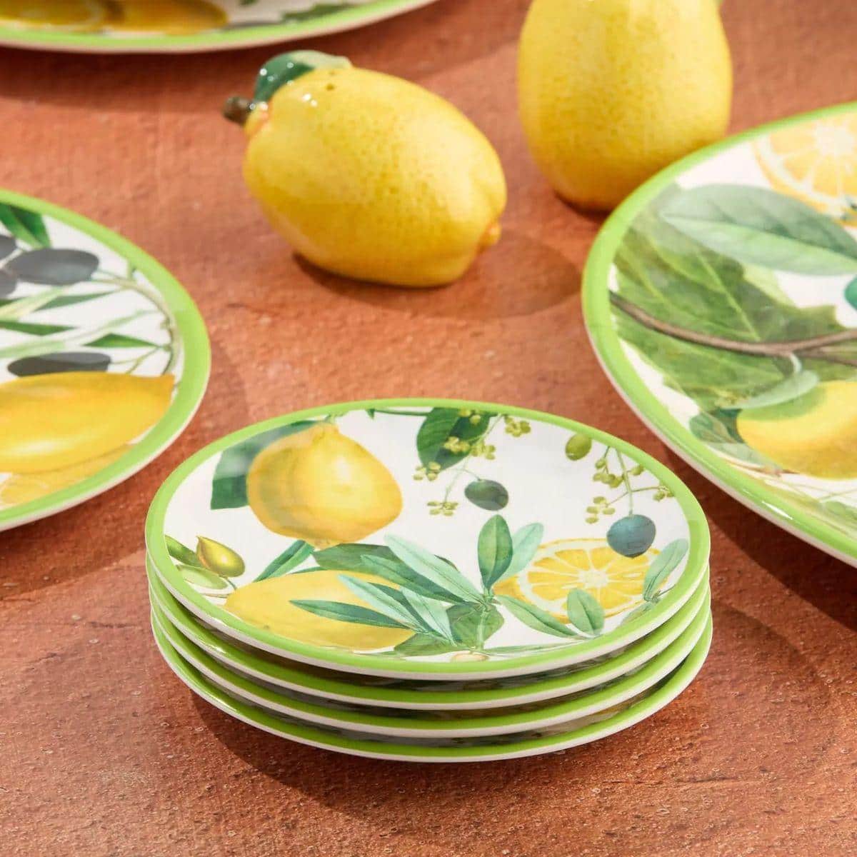 Коллекция тарелок «Лимоны и оливки» — это яркое летнее настроение, которое можно сервировать на столе круглый год. Сочные цитрусовые, оливковые ветви и свежие зеленые оттенки создают эффект солнечной террасы где-то в Италии. Каждая тарелка изготовлена из прочного меламина — она легкая, ударостойкая и сохраняет сочность рисунка даже при ежедневном использовании.