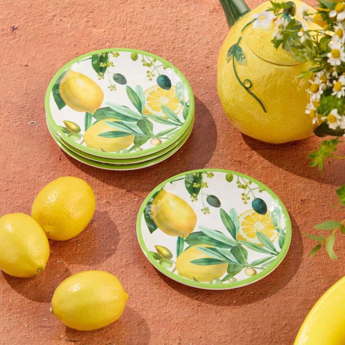 Набор меламиновых десертных тарелок Лимоны и Оливки 4 шт