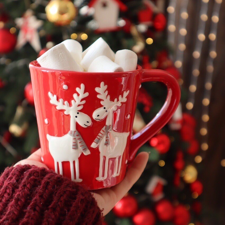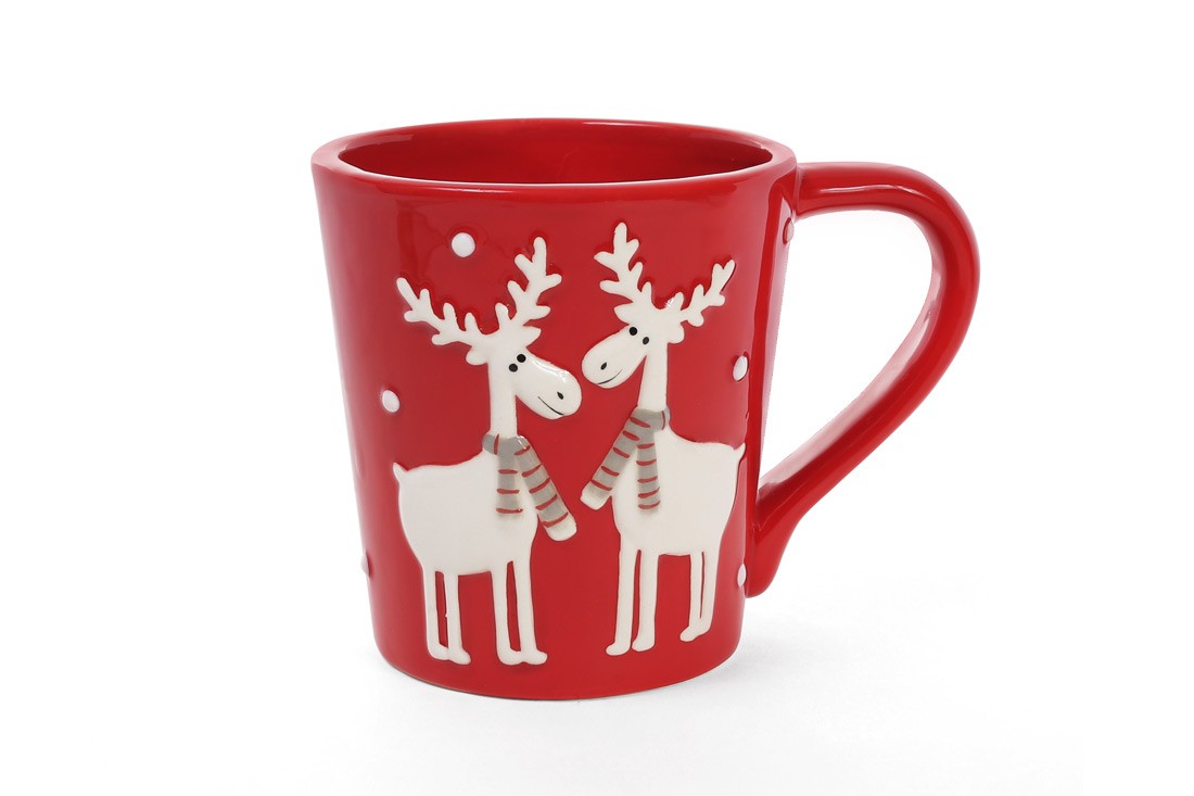 Набор новогодних кружек красных Братья Олени 325 мл/ 4 шт