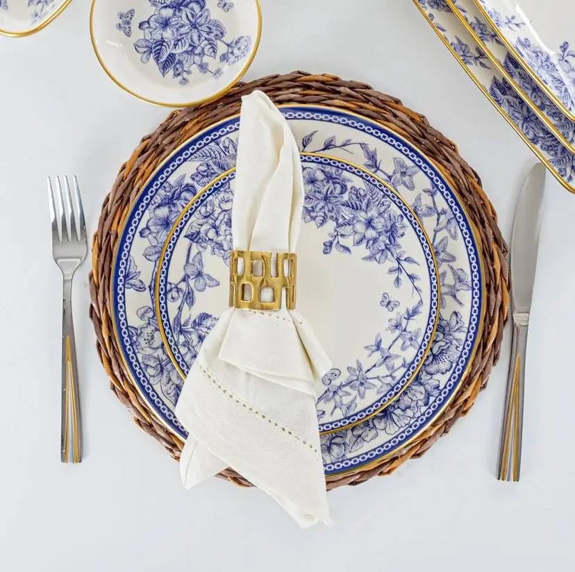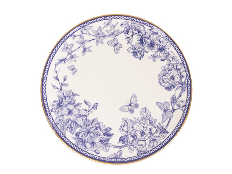 Набор обеденных керамических тарелок Butterfly — это гармоничное сочетание классического дизайна и изысканной эстетики. Каждая тарелка диаметром 26 см выполнена из прочной керамики и украшена утонченным синим узором с цветами и бабочками по краю. Белоснежная основа выгодно подчеркивает детали рисунка, создавая ощущение лёгкости и элегантности на вашем столе.