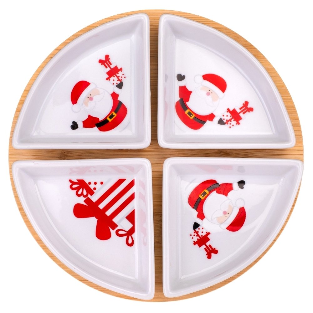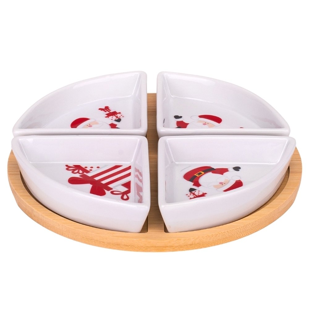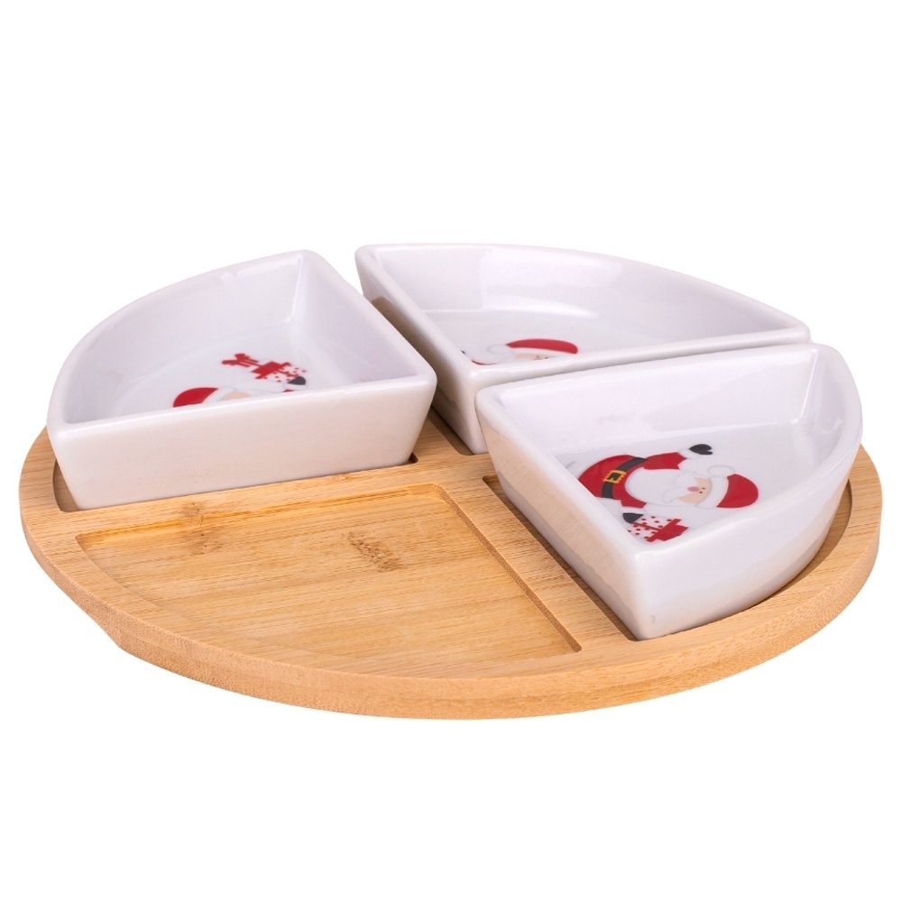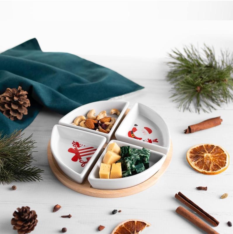 Набор пиал на бамбуковой подставке Bamboo Joy – это стильный и функциональный элемент праздничной сервировки, который сразу притягивает взгляд. Четыре пиалы необычной формы образуют идеальный круг, создавая эффект завершенности и гармонии. Яркие новогодние рисунки с Санта-Клаусом и праздничными мотивами поднимают настроение и делают даже обычный ужин особенным.