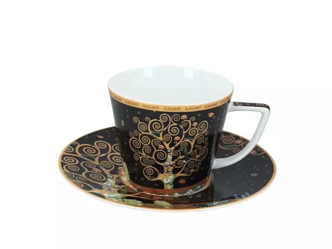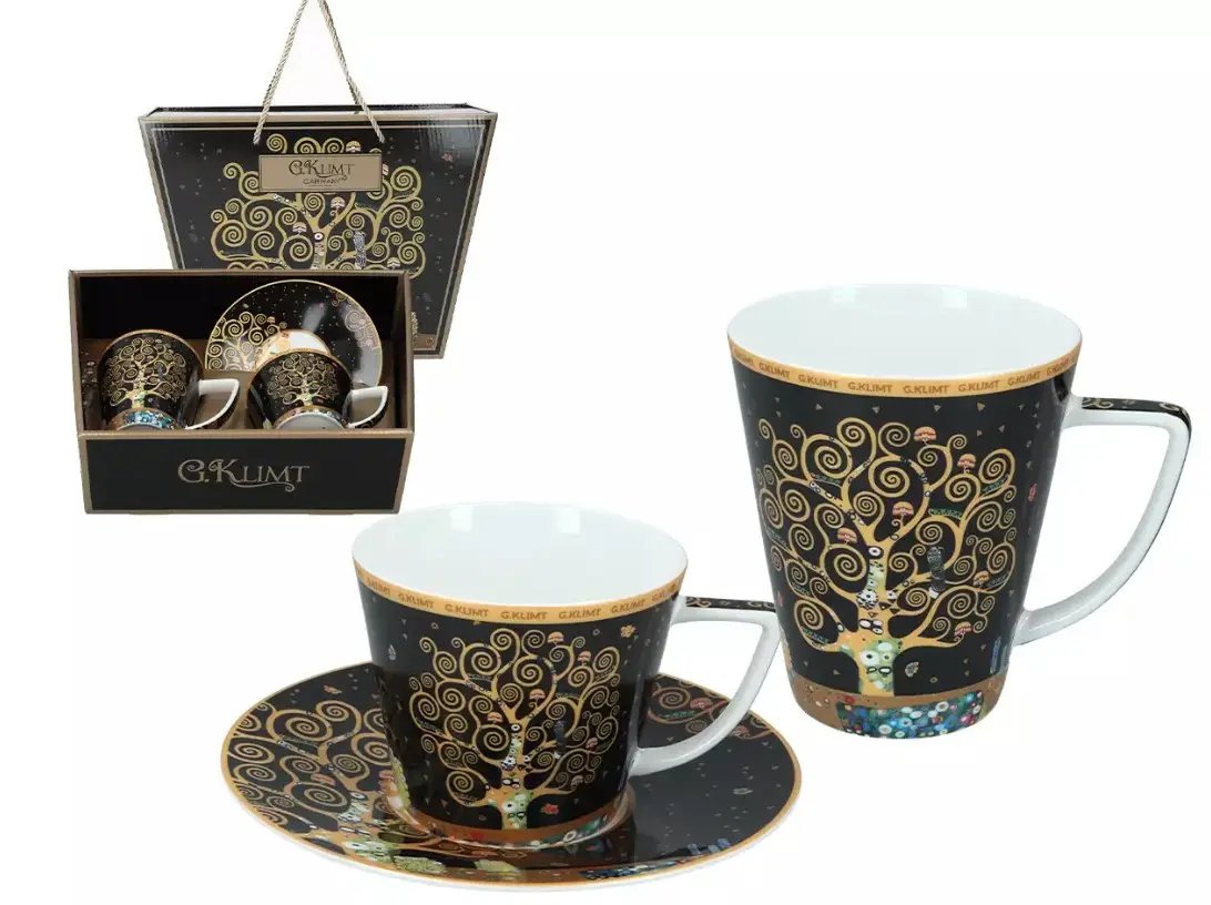 Коллекция Carmani, вдохновлённая произведениями Густава Климта, объединяет фарфоровые кружки, чашки и подарочные наборы, в которых искусство становится частью повседневных ритуалов. В наборах представлены изделия двух разных объёмов, что делает их особенно удобными: большая кружка подходит для кофе, чая или какао, а чашка с блюдцем — для эспрессо или утончённого чаепития. Узнаваемые орнаменты, золотые акценты и символические мотивы создают атмосферу изысканности и художественной глубины.