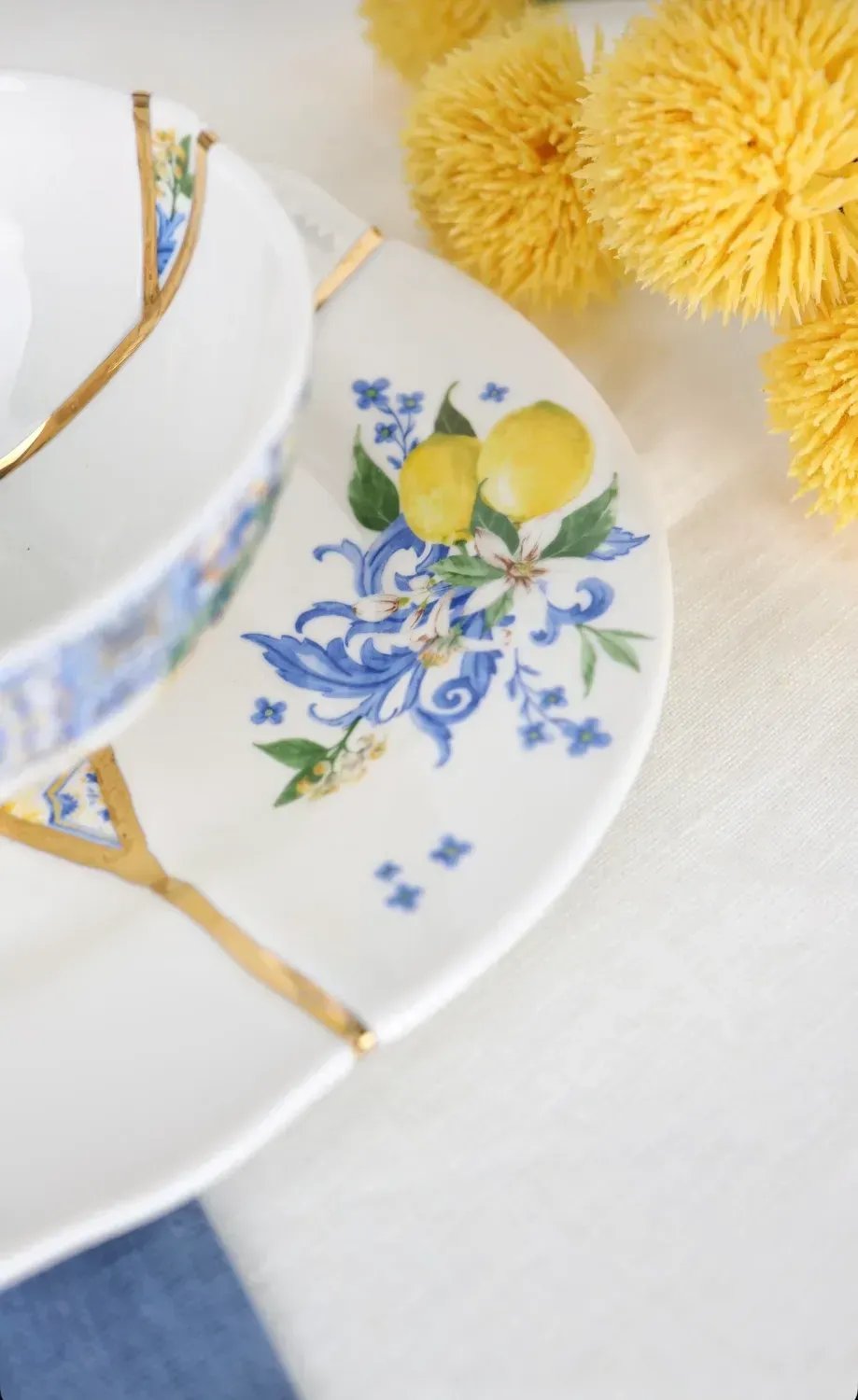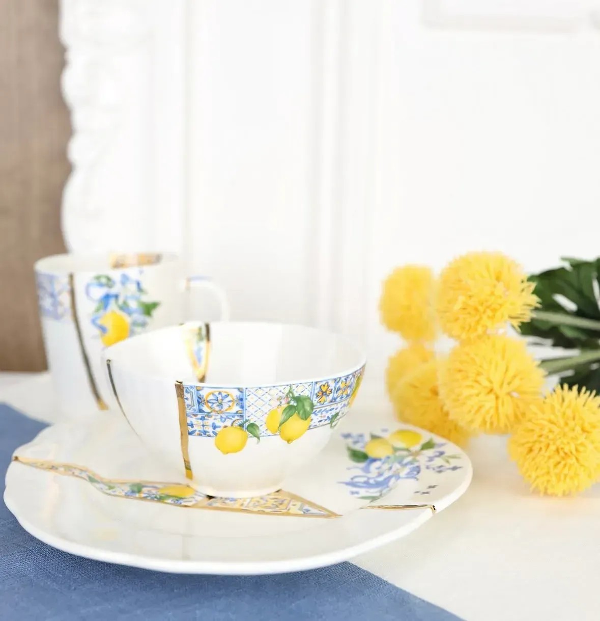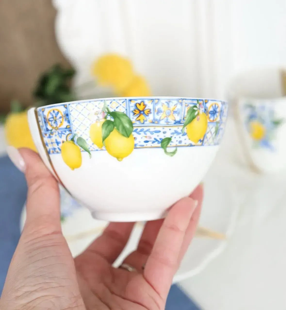 Набор посуды для завтрака из 3 предметов — это стильное решение для вашего утреннего стола. В комплект входят чашка объемом 300 мл, тарелка диаметром 20 см и салатник 11 см, выполненные из прочного и качественного фарфора. Белоснежная основа дополнена яркими декоративными элементами: лимонные мотивы, синие цветы и золотистые линии создают атмосферу солнечной Италии и делают сервировку особенной.