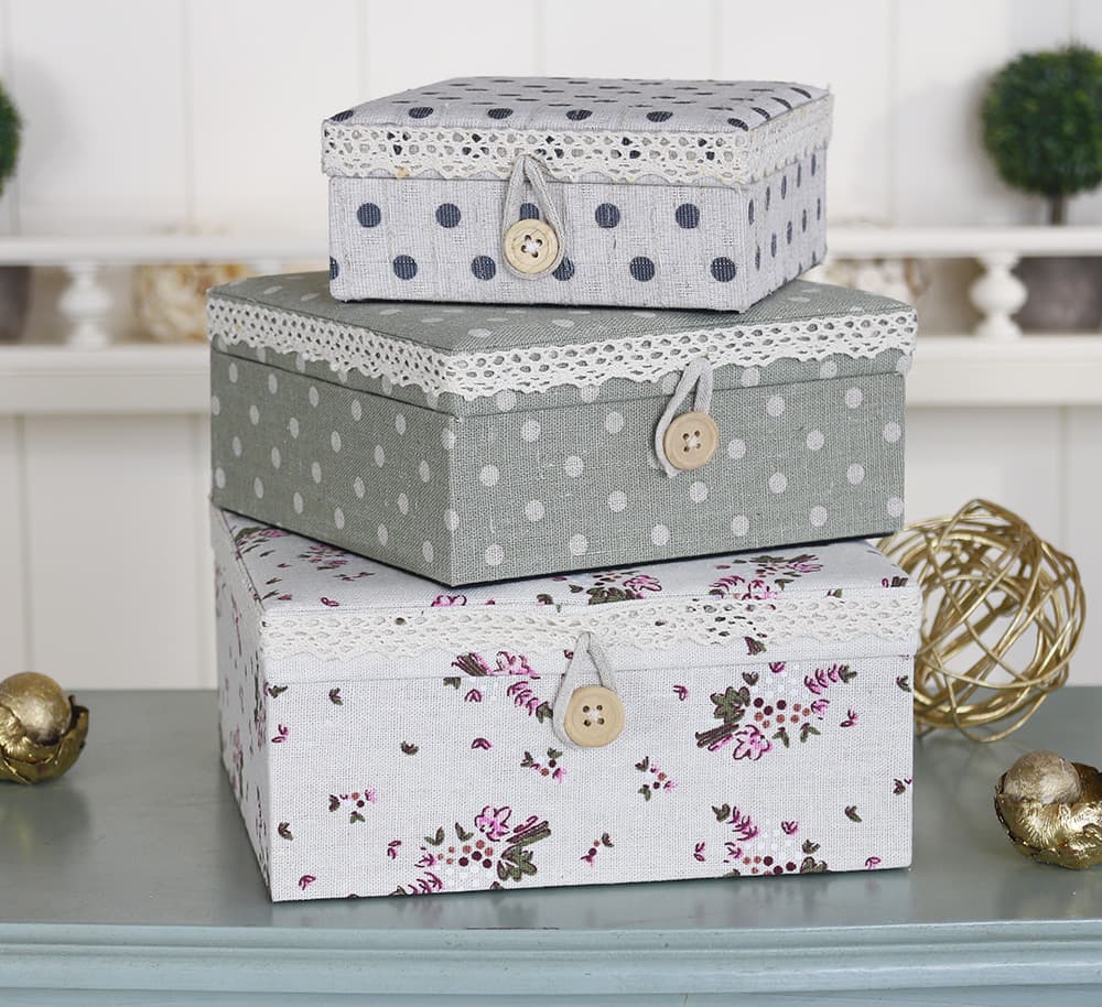 - Набор из трех шкатулок. Размеры: 18*18*8.5 см.