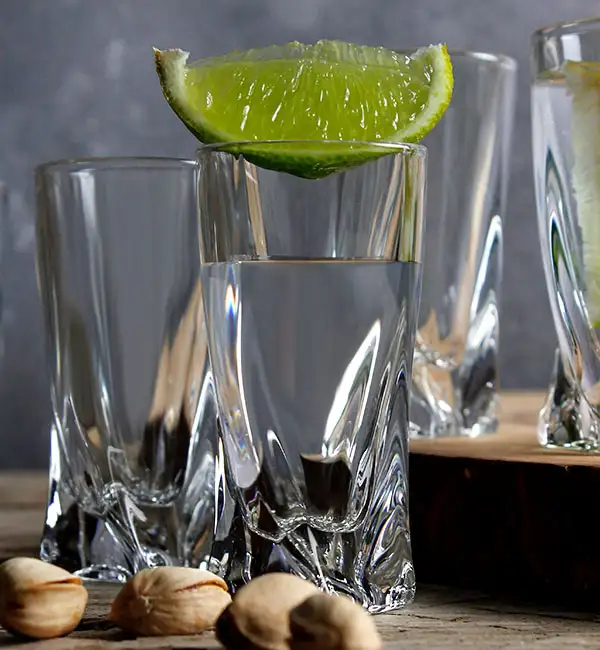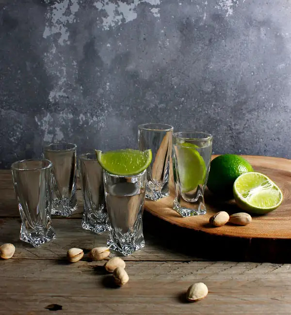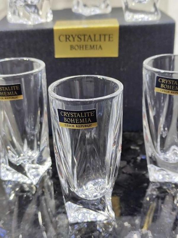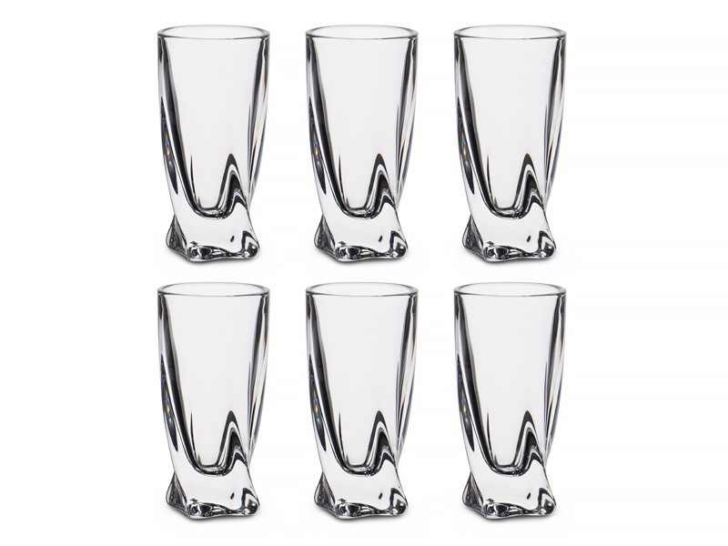 Набор стопок для водки «Квадро» из прессованного хрустального стекла с добавлением окиси титана и дополнительным обжигом края. Изящная форма стопок имеет утолщенное дно, что позволяет сохранить прохладу крепкого напитка. Надежность и практичность качественного богемского стекла. Лаконичность и элегантность в каждой линии.