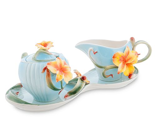 Що може бути ніжнішим і чарівнішим, ніж вид витончених пелюсток лілій на небесно-блакитній водній гладіні. Набір цукорниця та молочник ''Лілії'' від Pavone – втілення витонченості кольору та форм. Ще ніколи "чайні аксесуари" не виглядали настільки чарівно.