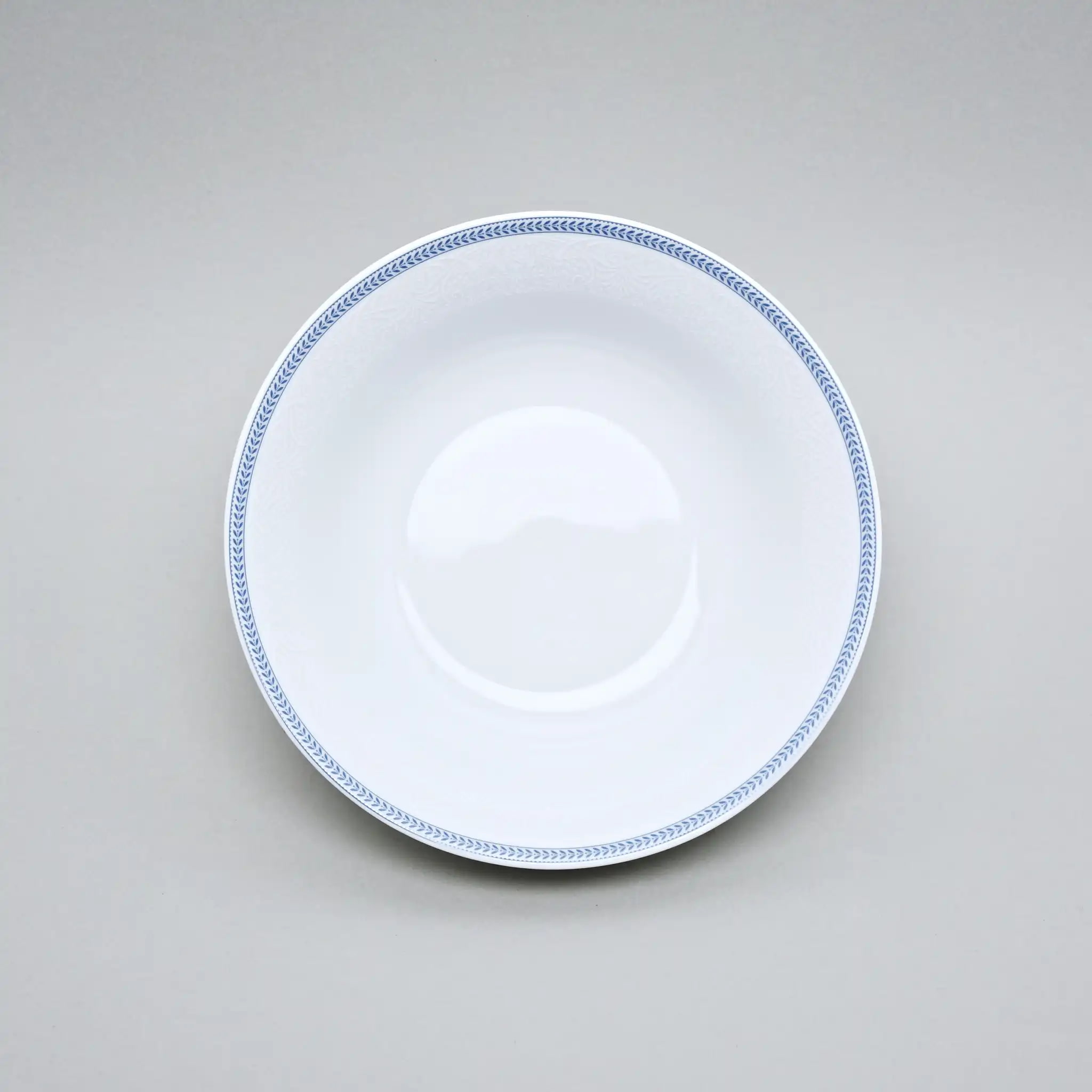 Эти элегантные фарфоровые миски — не просто посуда, а часть эстетики, которую хочется видеть на столе каждый день. Белоснежная поверхность с утончённым тиснением и голубым кантом напоминает спокойную мелодию на пластинке — ровную, мелодичную, лёгкую.