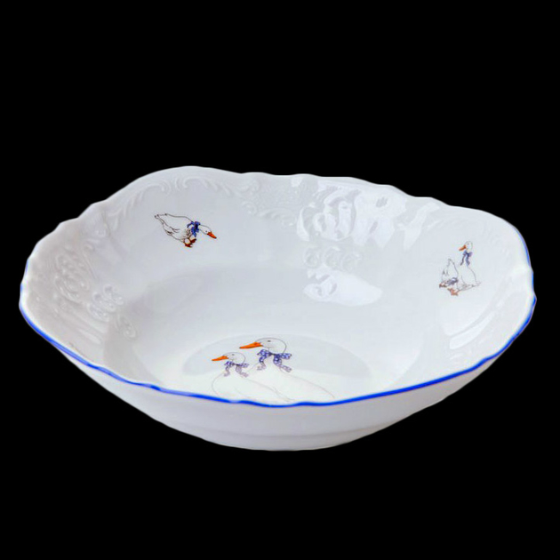 Набор салатников фарфоровых белых круглых с рисунком Bernadotte Гуси с синей каймой 6 шт/16 см
