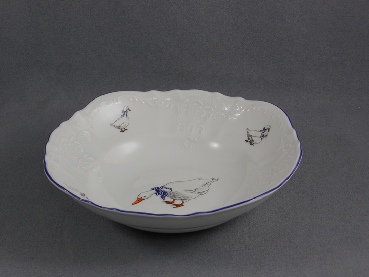 Набор салатников фарфоровых белых круглых с рисунком Bernadotte Гуси с синей каймой 6 шт/19 см