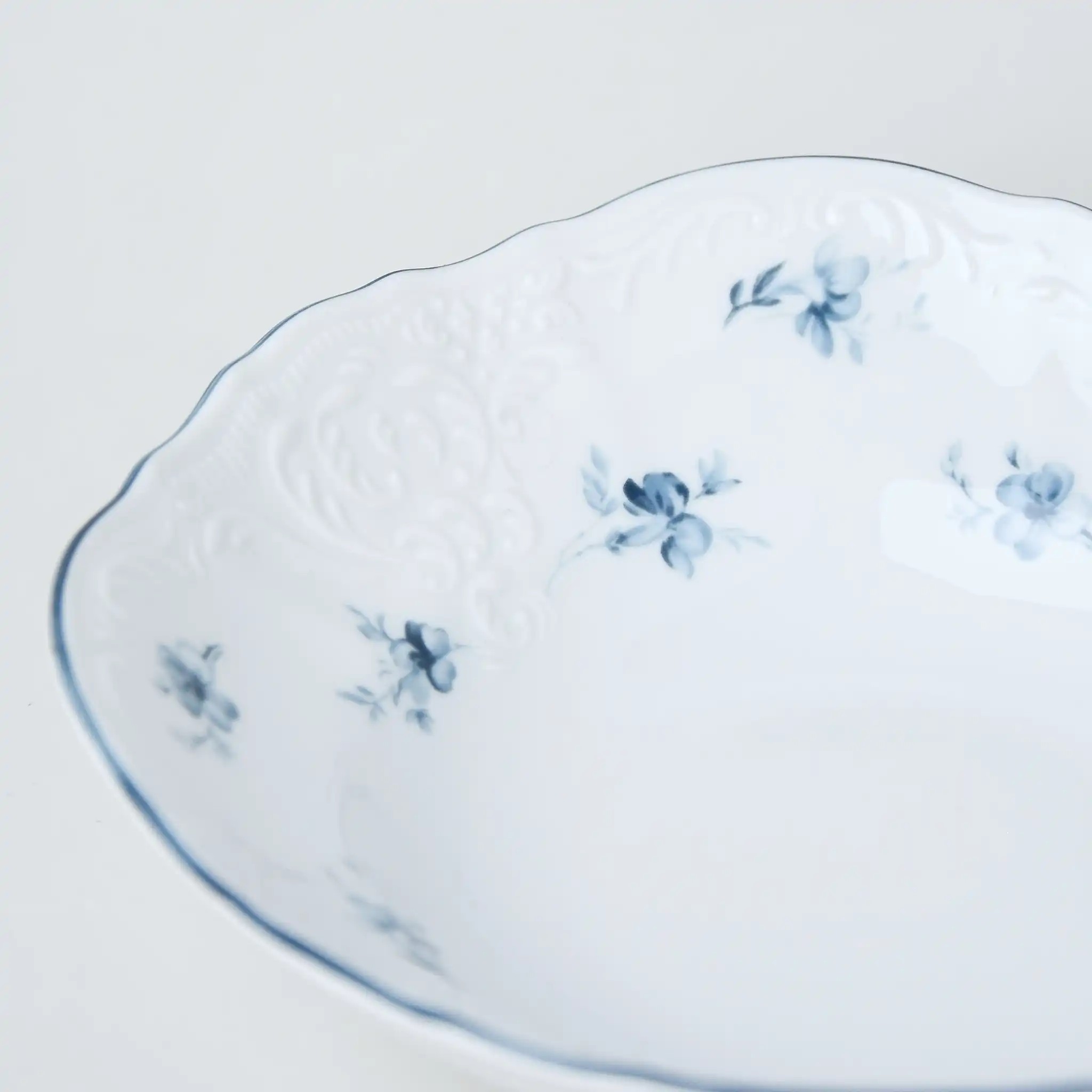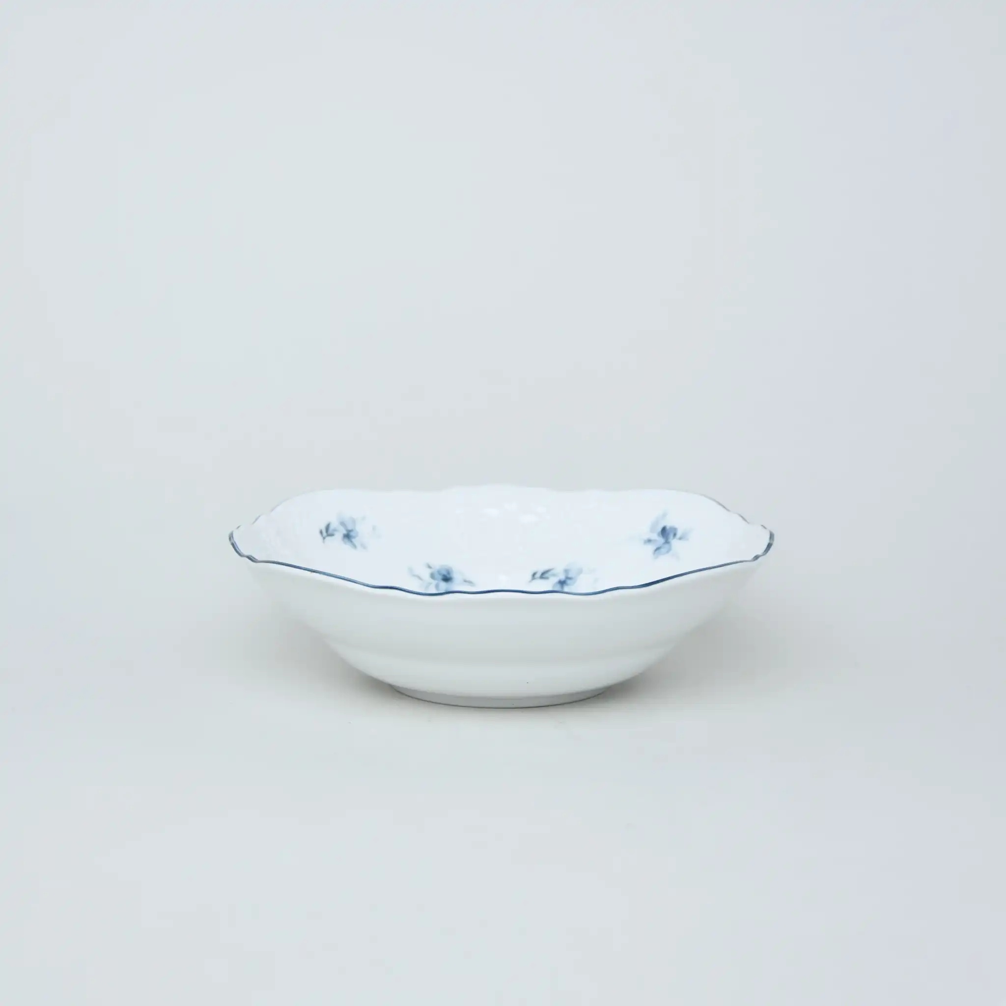 Набор салатников фарфоровых белых круглых с синим узором и краем Thun Bernadotte Апрельское Цветение 16 см/6 шт