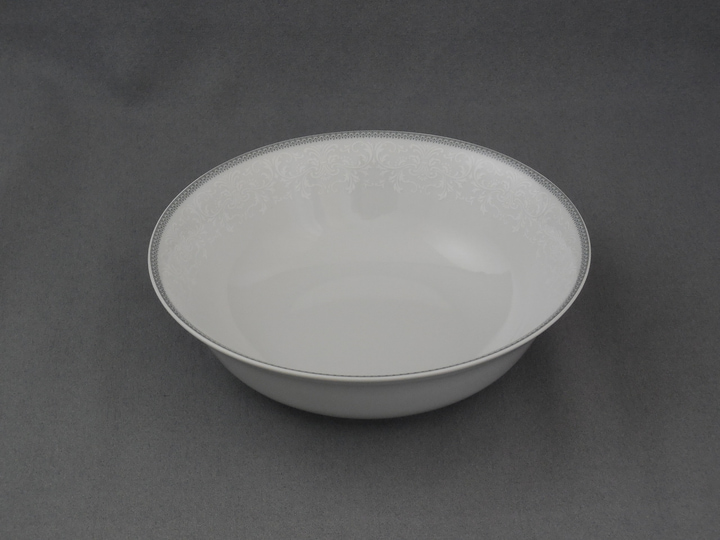 Фарфоровые салатники Серые Пластинки — это классика, проверенная временем. Белоснежный фарфор с тонким серым орнаментом по краю придаёт посуде сдержанную элегантность. Такой декор легко впишется в любую сервировку — от будничной трапезы до праздничного ужина. Посуда выглядит легко и стильно, без излишеств, при этом подчеркивая аккуратность и вкус.