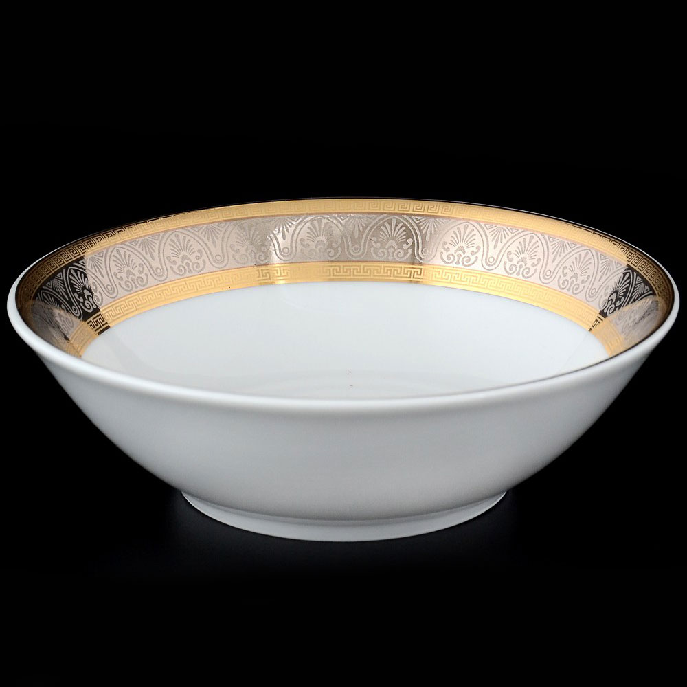 Набор салатников фарфоровых круглых с декором Thun Opal широкий кант золото+платина 13 см/6 шт