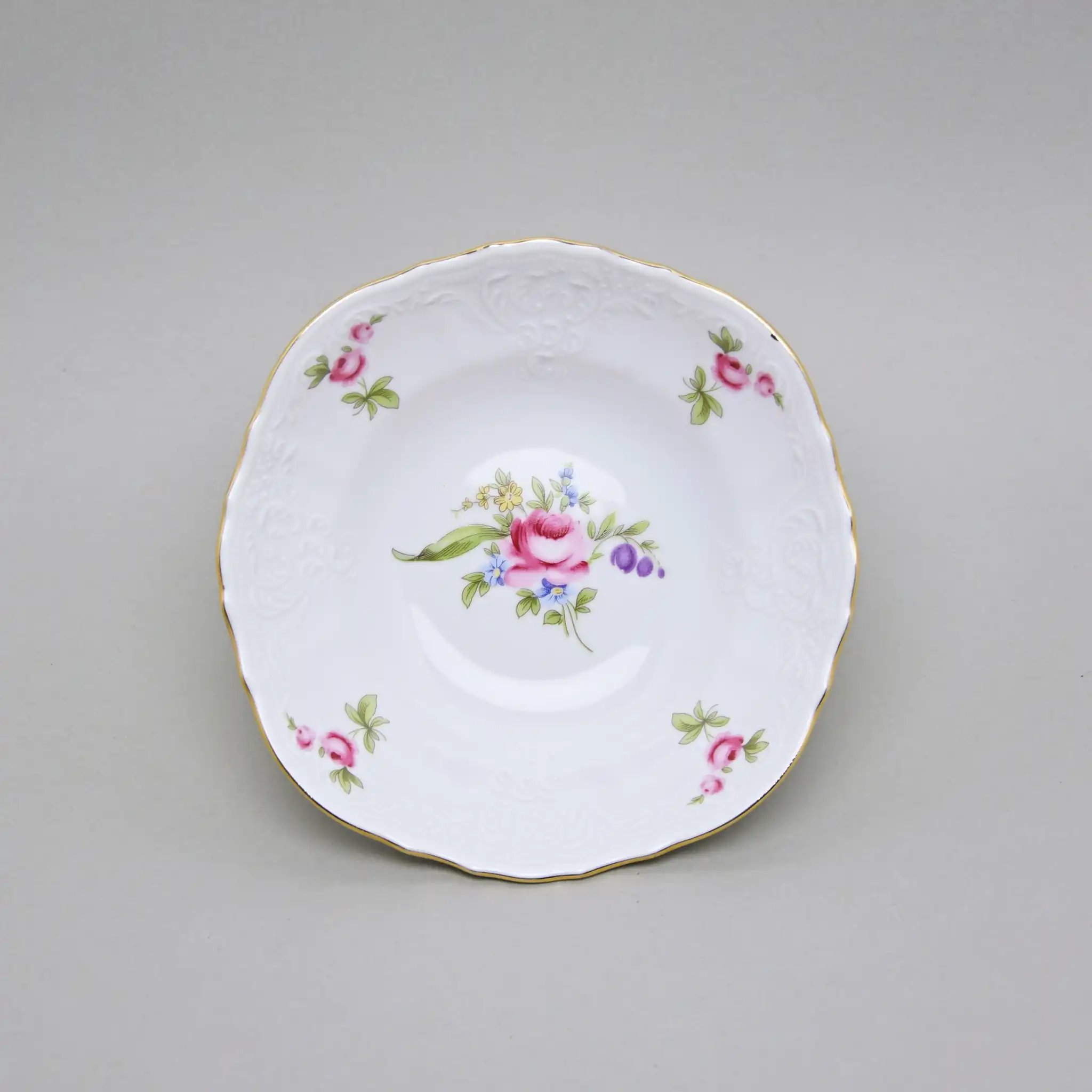 Набор салатников круглых фарфоровых белых с цветочным орнаментом и золотой окантовкой Thun Bernadotte Мейсенский Букет 16 см