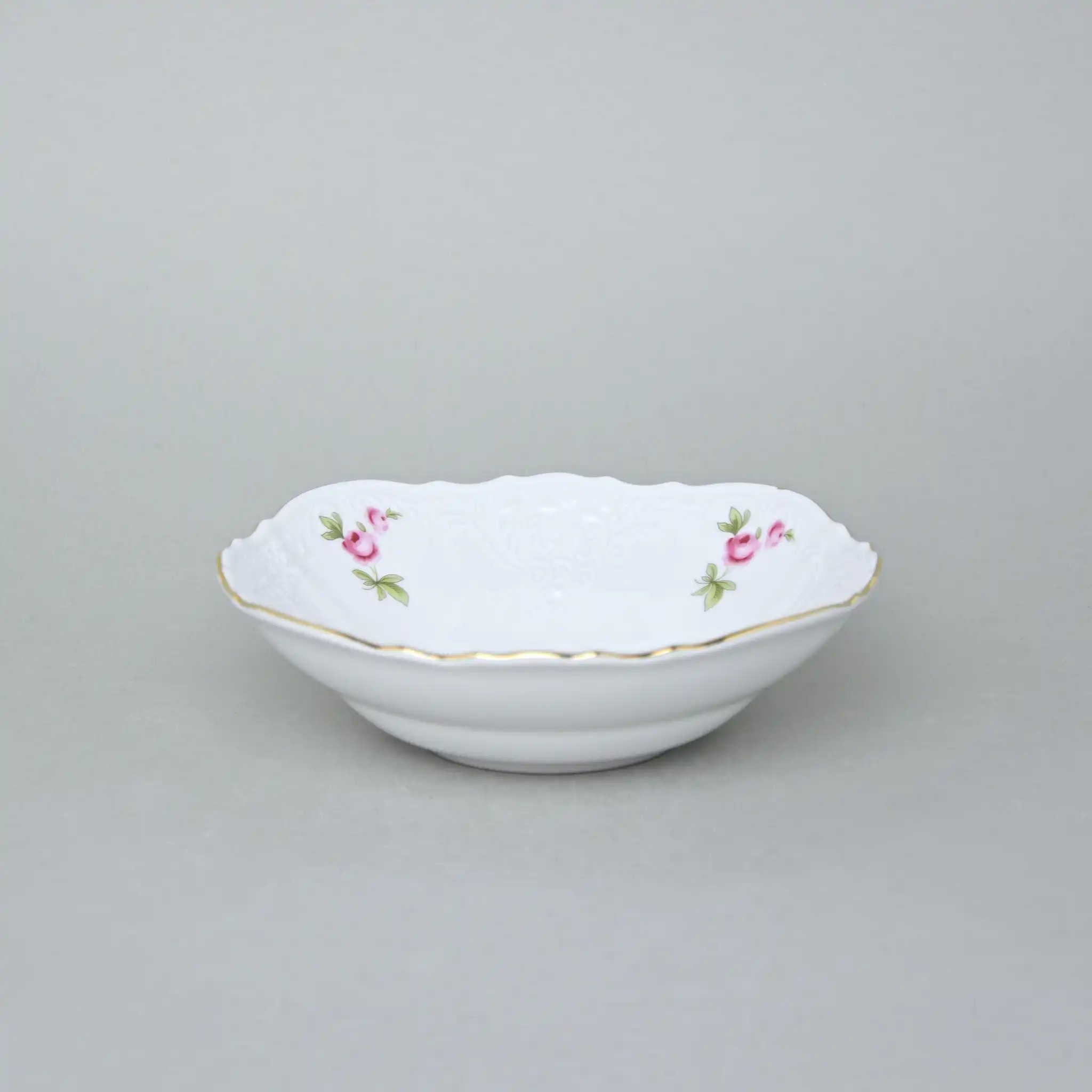 В этих салатниках строгие линии квадратной формы удивительным образом сочетаются с мягкостью цветочного декора. 16-сантиметровый вариант — идеальный спутник для утренних хлопьев, орешков или утончённых порций салата. А более вместительный 25-сантиметровый салатник подойдёт для подачи гарниров или эффектных миксов из овощей. Каждый изгиб, каждая линия и каждый цветочек на фарфоре словно написаны кистью художника, а золотая кайма добавляет благородства. Эти предметы станут ярким акцентом на вашем столе и подчеркнут чувство вкуса хозяйки.