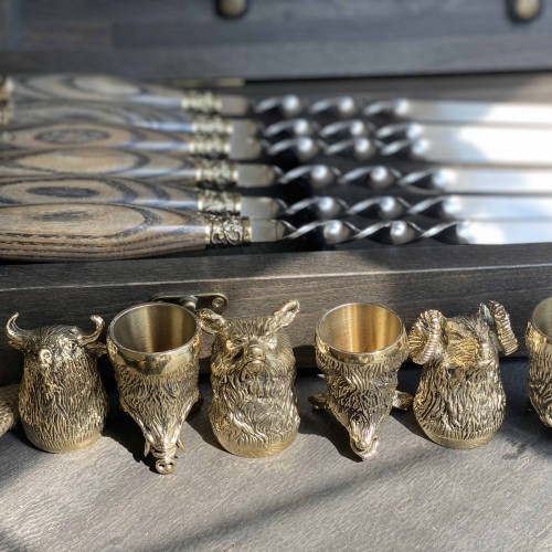 4. Рюмка "Охотничья" 30 мл: высота 70 мм, ширина 40 мм, художественное литье из бронзы, внутри покрытия булатом