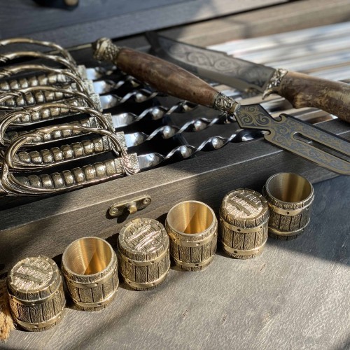 4. Рюмка "Охотничья" 30 мл: высота 70 мм, ширина 40 мм, художественное литье из бронзы, внутри покрытия булатом