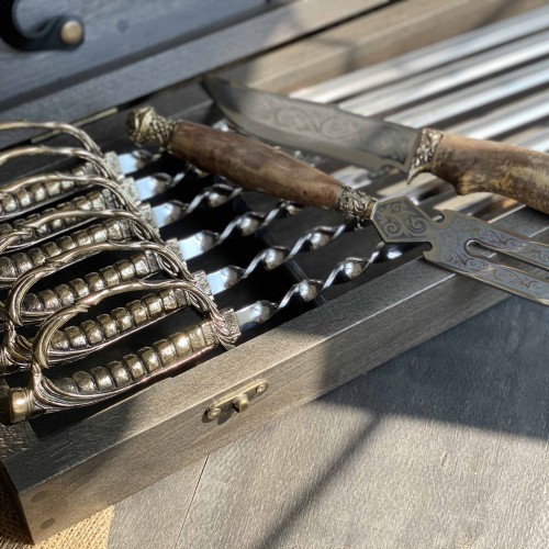 3. Вилка для снятия шашлыка с лезвием из нержавеющей стали 40х13, ручка из клена