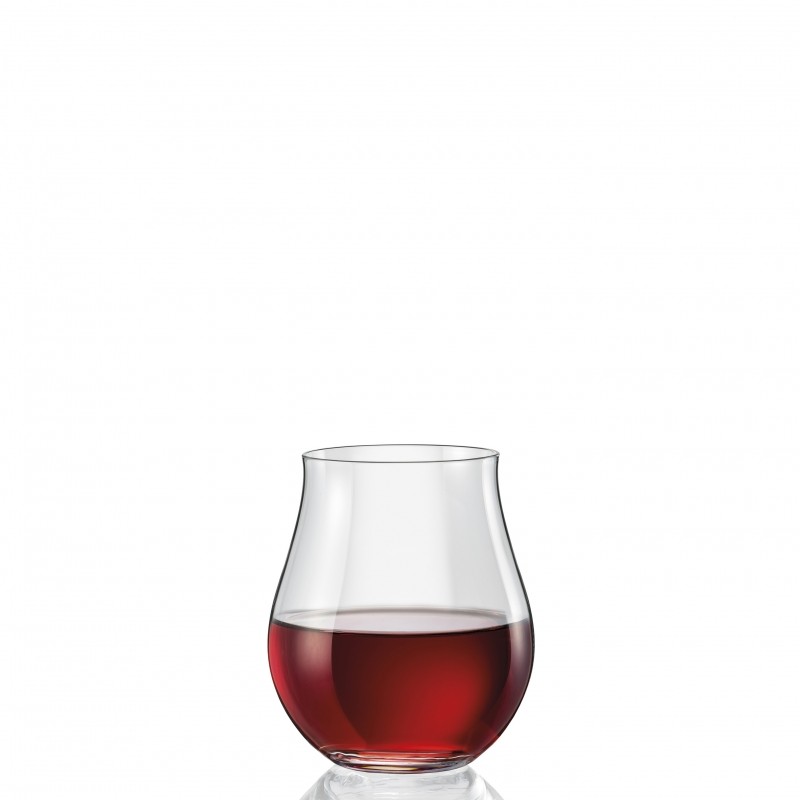 Стакан для красного вина. Особенно подходит для молодого или зрелого красного вина, но также может служить некоторым белыми и красными винами бургундского типа. Бокал выделяется своей классической и в то же время уникальной формой, напоминающей приоткрытый тюльпан - корпус чашки выпуклый и закрывается к горлышку, что позволяет идеально аккумулировать ароматические вещества напитка. Прежде всего, бокалы для красных вин должны быть объемными, чтобы аромат мог развиваться идеально, а вино было достаточно насыщенным кислородом. В такой бокал следует наливать вино глубже половины. Чем больше стакан, тем ниже мы наливаем пропорционально его объему. Во время кругового движения бокала создается довольно большая площадь, благодаря чему вино отлично аэрируется, и мы можем гораздо больше наслаждаться его ароматом.
