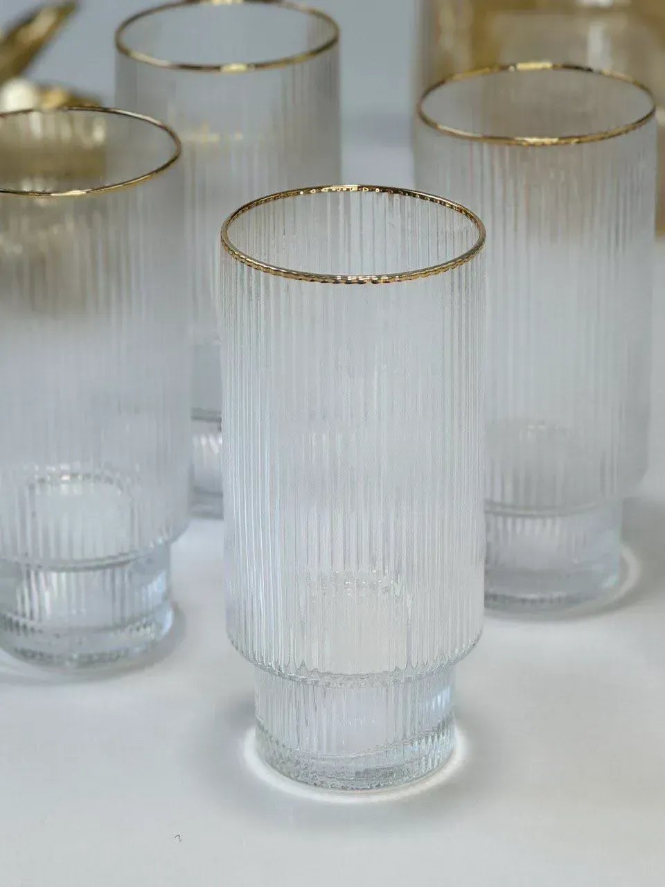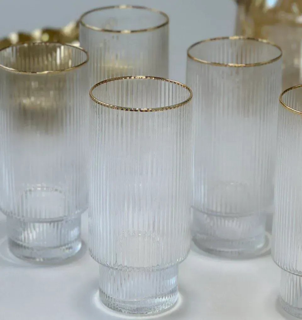 Набор стаканов стеклянных для напитков Olens Echo Lines 6 шт/370 мл с золотой каймой
