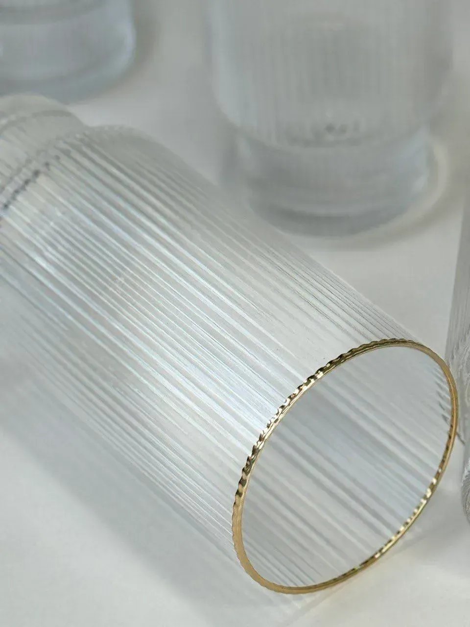 Коллекция Echo Lines — это эстетика ритма, воплощённая в стекле. Вертикальные линии создают игру света и тени, добавляя объёма и фактуры каждому изделию. Это стекло, которое хочется рассматривать и держать в руках — оно не просто утилитарное, а тактильное, архитектурное, эмоциональное.